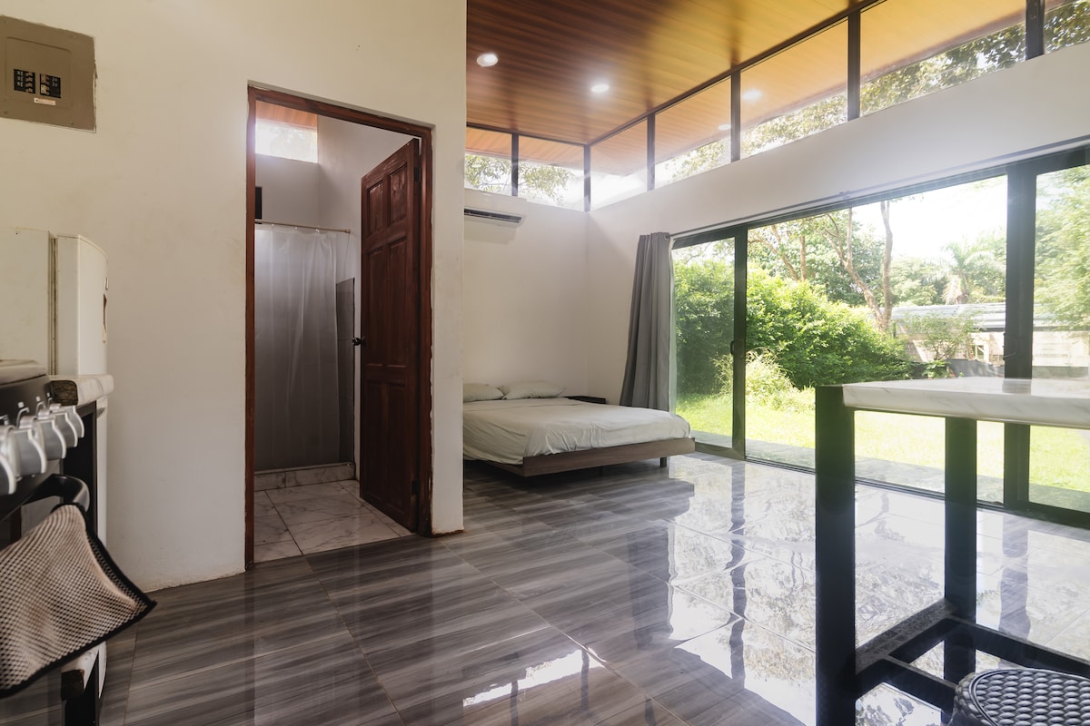 Profitez de l'atmosphère stylisé de ce condo à proximité de toutes les commodités. Loft complètement rénové en 2022, style chic hôtel. Internet 100 mbps. Idéal pour télé-travail, tout en profitant des sons de la nature. Situé dans Las palmas. Sécurité sur le site de 18h à 6h. À 4 min de marche de la plage et de quelques restaurants, petite épicerie, clinique médicale, dentiste, soins esthétiques, et plus. À 10 minutes de marche également du centre-ville. À 30 min de l'aéroport de Liberia.