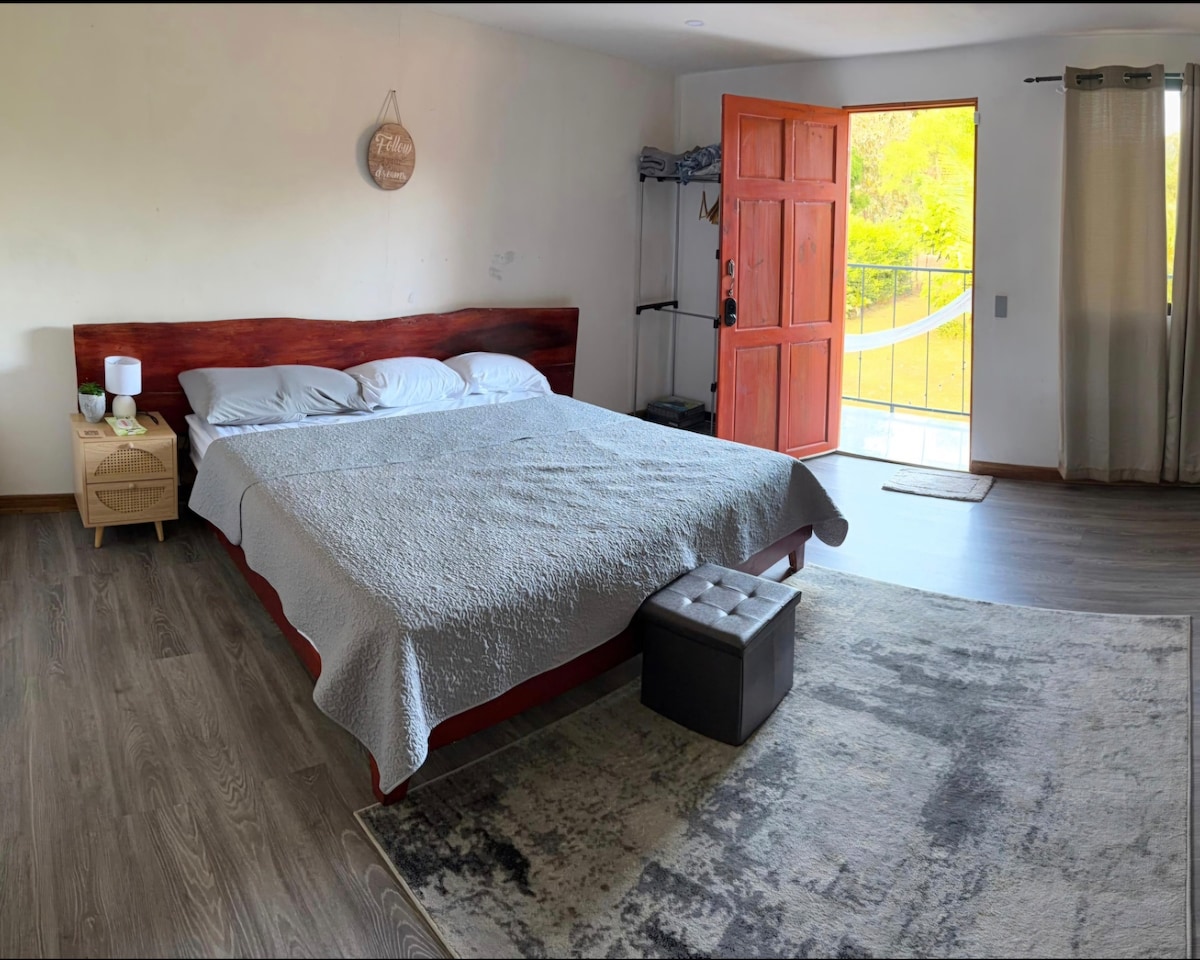 Finca San Antonio is located 6km south of Liberia on Pan-American Highway 1. Secluded ranch apartment 5-10 minute drive from all your restaurant and shopping needs . Modern Apartment in a barn. Perfect hub to explore Guanacaste, Costa Rica. Private parking and security 24/7. Approximate drive time: 20 min to LIR Airport. 45 min drive to Rincon de La Vieja, Santa Rosa and Palo Verde national parks. 30–40 min drive to Playas del Coco and Playa Hermosa.