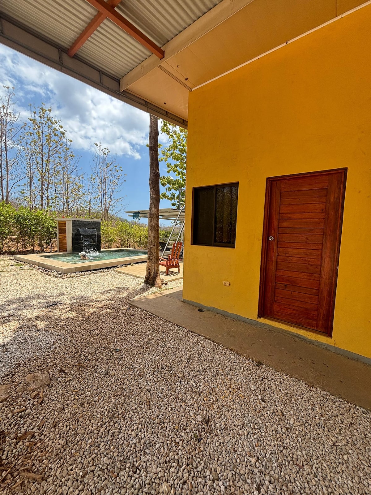 From the moment you arrive, Casa Jocote welcomes you with a relaxed and natural ambiance. The outdoor area features light-colored stone flooring that blends seamlessly with the tropical vegetation, creating a clean and inviting environment.☀️Sunbathing Area: Two comfortable wooden lounge chairs await you by the pool, perfect for soaking up the Guanacaste sun or reading a book in the shade of the trees.Private Pool: Located right next to the lounge area, ideal for cooling off in complete privacy.