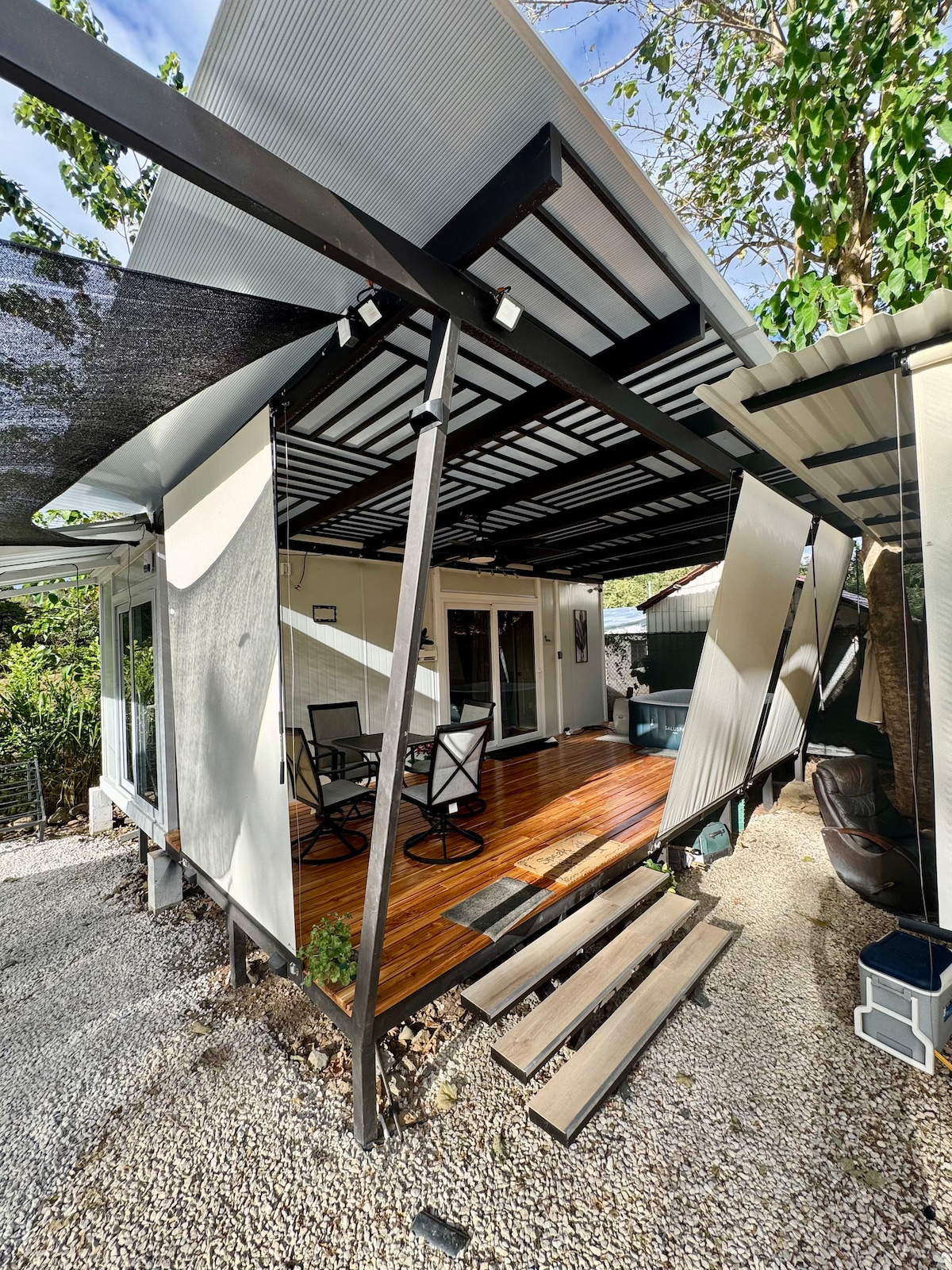 Apartment near the mountain in a rural street with a natural tropical environment, neighborhood with a lot of privacy, quiet 15 minute walk to Playa del Coco, close to supermarkets, ideal for biking or running, small pool for 4 or 5 private people, garden with stone, full kitchen to use, bathroom with open shower so you will have a different experience when taking the shower, space to work, nature ,glamping experience