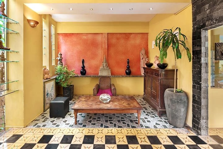 Beautiful bedroom (17m2) designed in a Bohemian style with private bathroom, right in the heart of Samui's famous Fisherman's Village. It is a unique place you will not find anywhere else, with its beautiful patina decoration, a discerning set of subdued lights to create a warm and cozy atmosphere, and every amenities to make your stay the most comfortable possible. Situated 50m from the beach and within walking distance of every activity you can think of, you can only enjoy your stay!