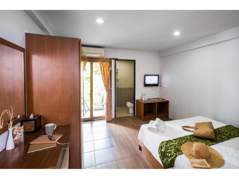 This room is facing to the back of our property with balcony. Space is around 6x5m = 30 m2. 6 foot king size bed with comfy spring mattress. Air conditioner. Small refrigerator. Flat screen TV connected to satellite channels. Our wifi is connected to 500/100 mbit fiber connection from AIS internet provider and has fast international speed 24 hours.