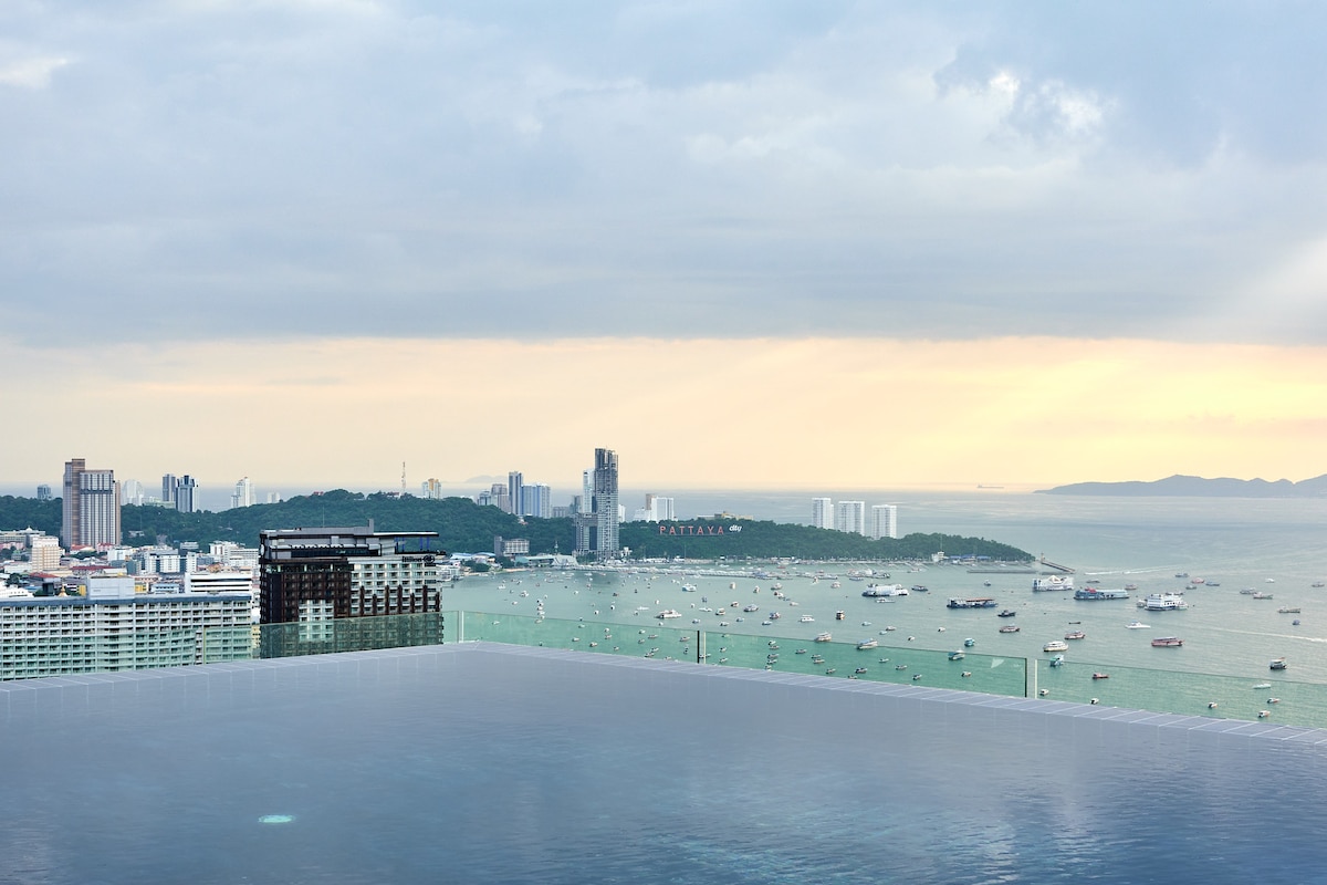 芭提雅市中心网红无边泳池海景公寓|A0J城市夜景、|步行至海滩、六巷soi6、