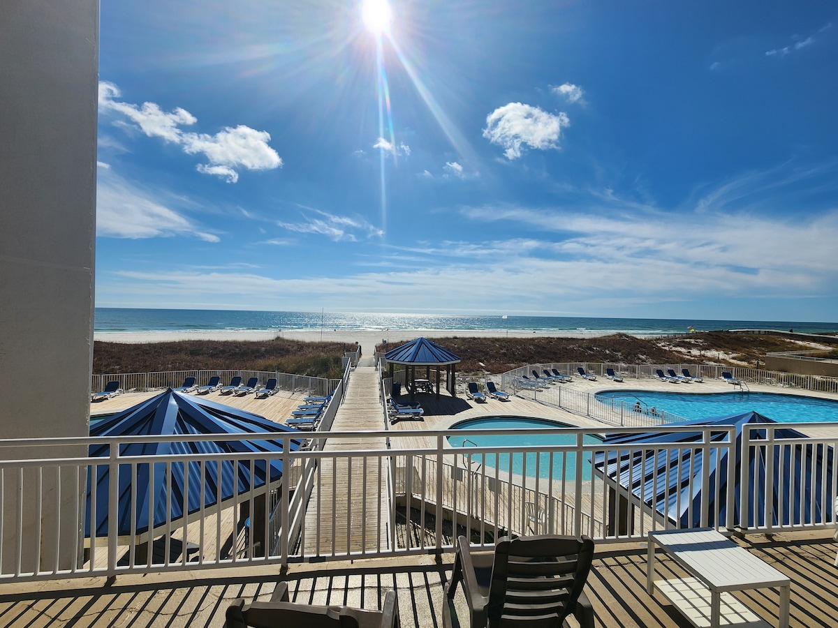 PALATIAL COASTAL HAVEN - ELEGANT and RIVETING! ROMANTIC WATER OASIS! AN OCEAN TROVE of AMENITIES! A MAVERICK FOR MEMORY MAKING! DIRECTLY on the GULF COAST - with CAPTIVATING breathtaking views! CREATE AQUATIC MEMORIES - LAZY RIVER, OUTDOOR and INDOOR pool, WATER SLIDE, HOT TUB, FITNESS center! It's all here for you! Condo hosts a fun-spirited open floor plan - with private balcony overlooking the GULF! Walking distance to the Renowned Hugh Branyon Backcountry Trail and Alabama State Park!