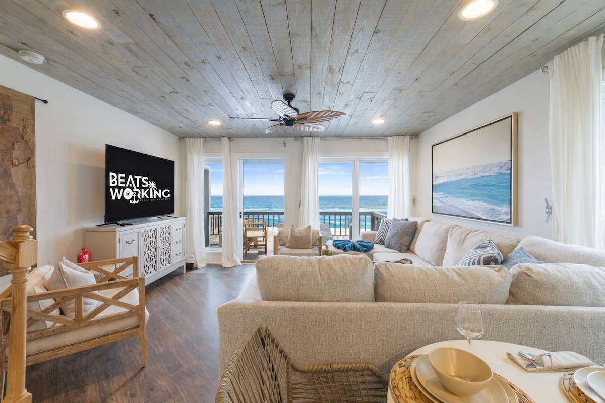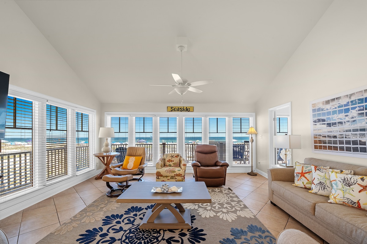 There is no better feeling than hearing & seeing the ocean while relaxing in the comfort of your own private beach front deck… knowing that at any moment you can step out of your chair and take a 22-step stroll onto the beach. It's the Beautiful Gulf Front Views that give this beach-front home its name (Ocean Dreams) This 4 bed, 3 Full Bath is constant serenity, and gives this freshly renovated home (Jan ‘22) its spirit. It includes beach cart, chairs, towels, umbrellas 2 pools & p.ball courts!