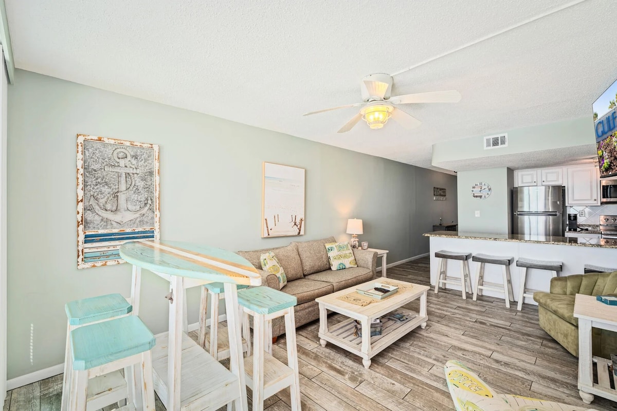 Relax at this newly remodeled beachside condo located in the Royal Gulf Beach and Racquet Club (Plantation Resort). It's just a few steps to Gulf Shores' white sand beach and offers a beautiful ocean view from the balcony. Peaceful slumber awaits on the King, Queen, and sleeper sofa beds. Direct balcony access from the primary bedroom. Abundant RESORT AMENITIES include 6 Outdoor Pools, a Heated Indoor Saltwater Pool, Sauna, Hot Tub, Putting Green, Pickleball and Tennis Courts and Fitness Room.