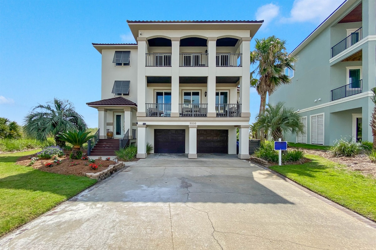 海滩别墅!泻湖钓鱼/划船通道!泳池!