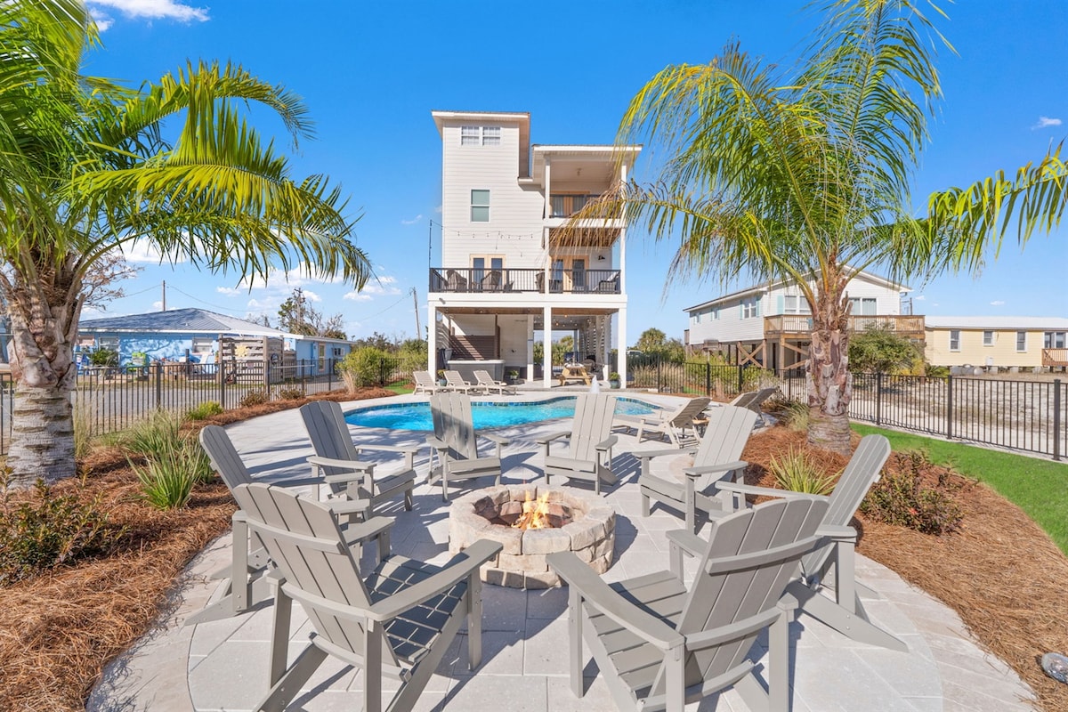 "Shipwrecked Orange Beach" ☀ 8 bikes provided ☀ Ping pong & Foosball ☀ 4 Arcades w/ Star Wars Pinball & Wheel of Fortune, NBA Jam and Pacman ☀ Beach – 5 min walk (cart, chairs & toys provided) ☀ Pool – 1 min walk out front door ☀ Direct access to Gulf State Park's 25+ miles of walking/jogging/biking trails – 1 min walk ☀ EV Charger + free parking for 3 vehicles ☀ Digital board game table ☀ Private, fenced sandy backyard w/ hanging chairs + cornhole + hammocks + firepit + grill ☀ Baby gate