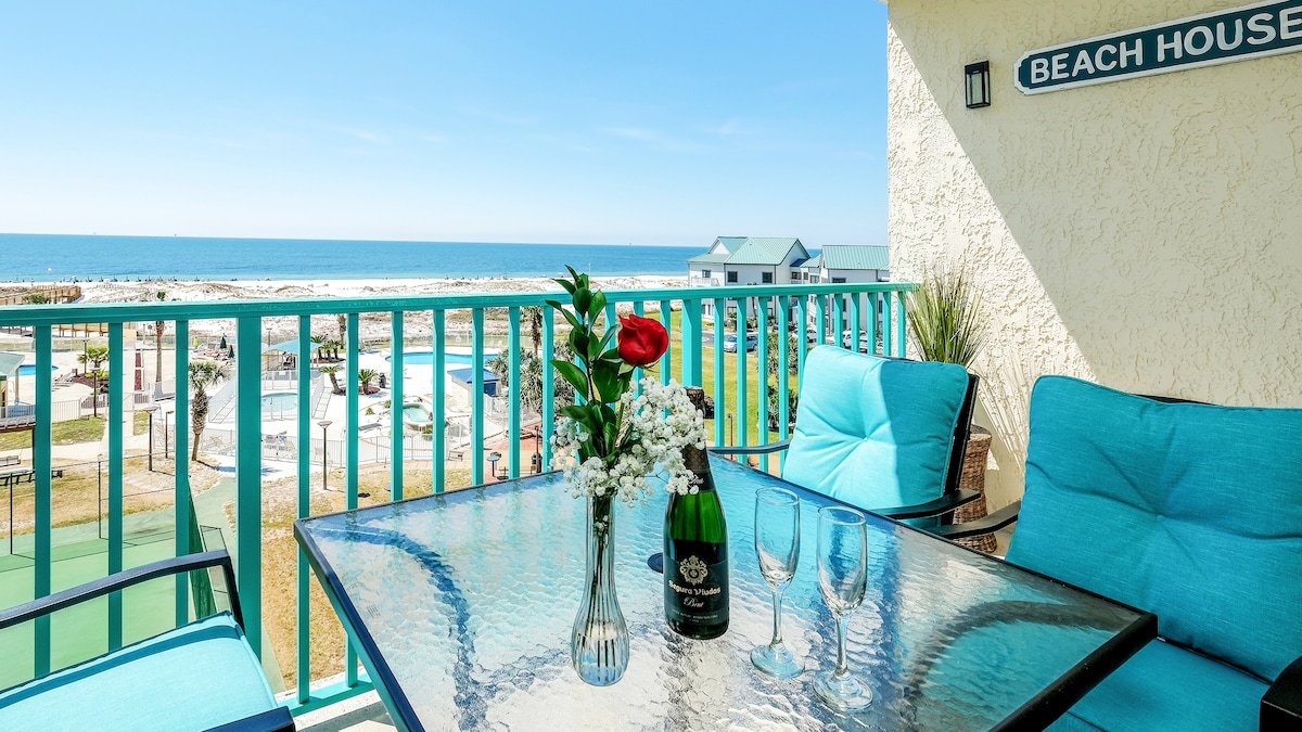 Where breathtaking views meet prime location. Enjoy: -Stunning private balcony with sweeping gulf views. -Step out of your unit and on to the beach. -Complimentary parking included in reservation ($30 Value!). -1 King Bedroom + built-in bunks + queen sofa bed. -Private pool right on the beach. -Located in the heart of Gulf Shores, walking distance to The Hangout and much more. -Newly renovated unit! -"Guest Favorite" designation ranks us in the Top 5% of all AirBnB listings!