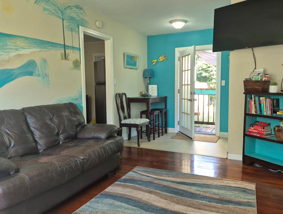 This stylish studio is situated in the very back of a property & has its own separate fence where you will have your own private abode conveniently in Downtown Pensacola. This unique suite provides a smart tv, newly constructed kitchen & bath, cook top, retro appliances, comfortable full sized bed, & a twin sized futon. There is a 2 person hammock under a peaceful palm tree. Within walking distance to main downtown shopping, eating, & night life as well as the Blue Wahoos Stadium!