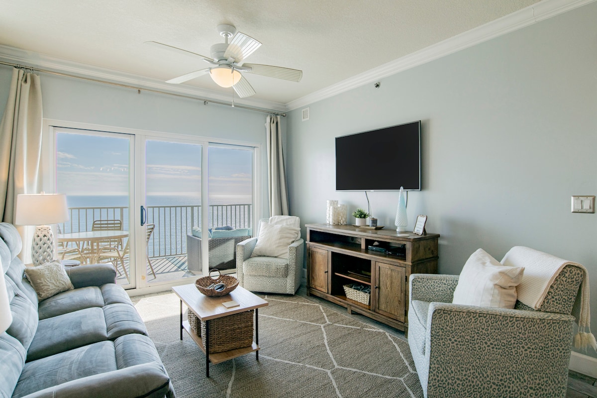 Bring the whole family together in this beautifully designed & thoughfull laid out beachfront condo. Offering spectacular views, multiple generous living areas & comfort for every generation. With room to gather & space to unwind, this home is perfect for grandparents, parents & kids or friend groups to share unforgettable beach days to enjoy together without feeling crowded. With panoramic views from floor-to-ceiling windows, this spacious condo offers breathtaking scenery sunrise to sunset.