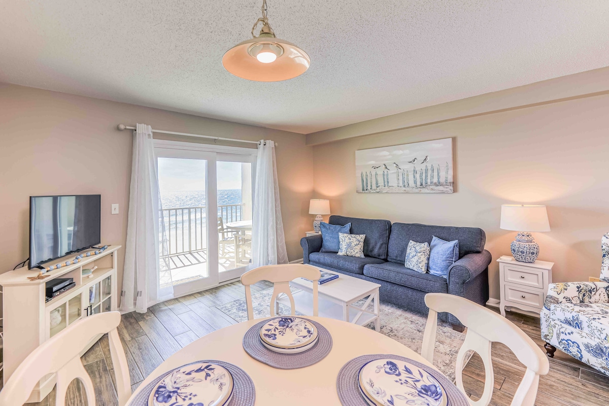 Where breathtaking views meet prime location. Enjoy: -Stunning private balcony with sweeping gulf views. -Step out of your unit and on to the beach. -Complimentary parking included in reservation ($30 Value!). -1 King Bedroom + built-in bunks + queen sofa bed. -Private pool right on the beach. -Located in the heart of Gulf Shores, walking distance to The Hangout and much more. -Newly renovated unit! -"Guest Favorite" designation ranks us in the Top 5% of all AirBnB listings!