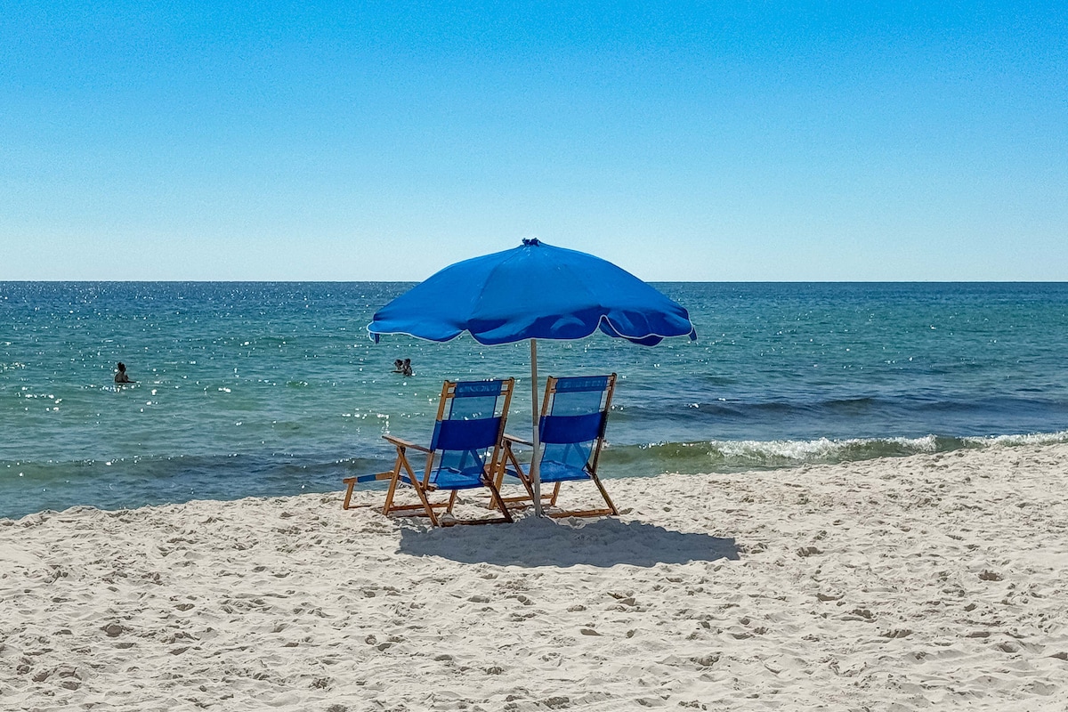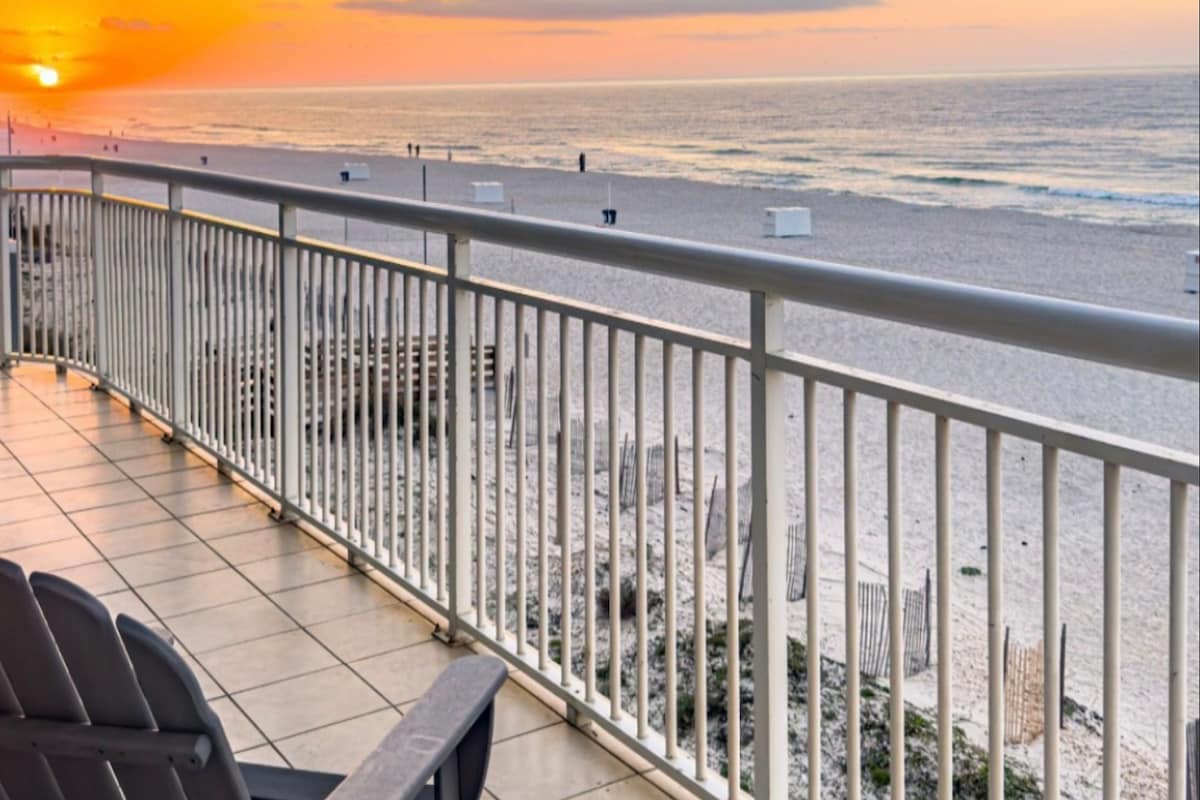 Where breathtaking views meet prime location. Enjoy: -Stunning private balcony with sweeping gulf views. -Step out of your unit and on to the beach. -Complimentary parking included in reservation ($30 Value!). -1 King Bedroom + built-in bunks + queen sofa bed. -Private pool right on the beach. -Located in the heart of Gulf Shores, walking distance to The Hangout and much more. -Newly renovated unit! -"Guest Favorite" designation ranks us in the Top 5% of all AirBnB listings!