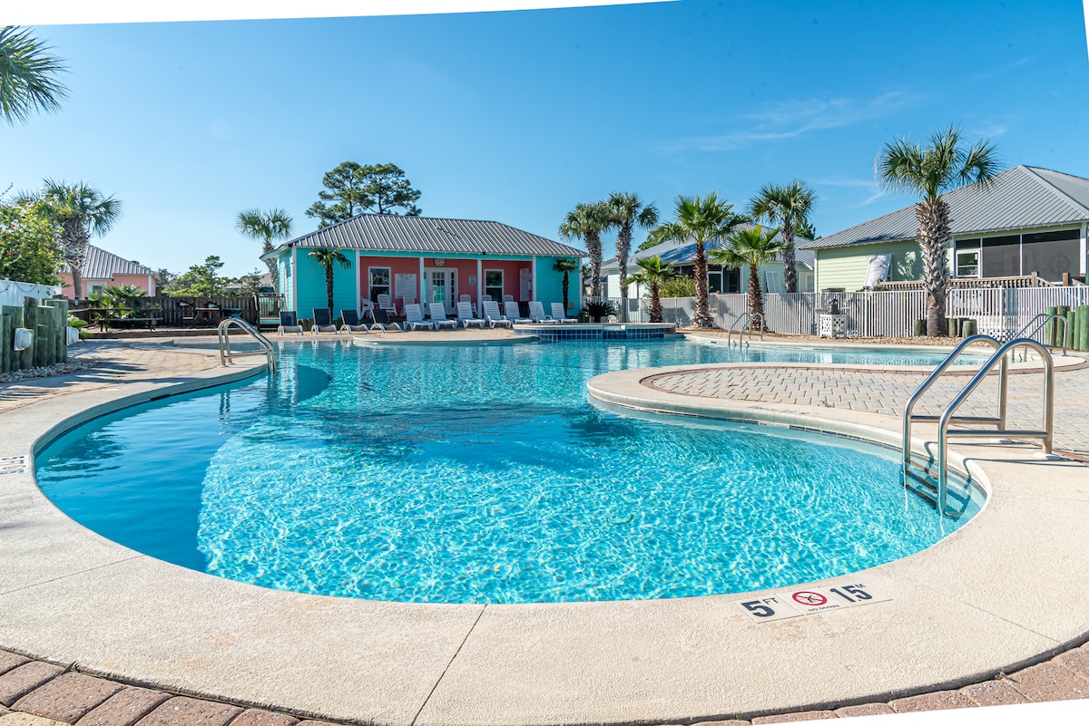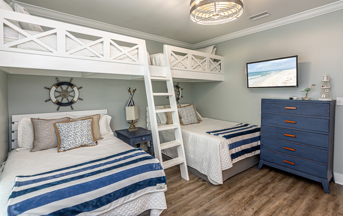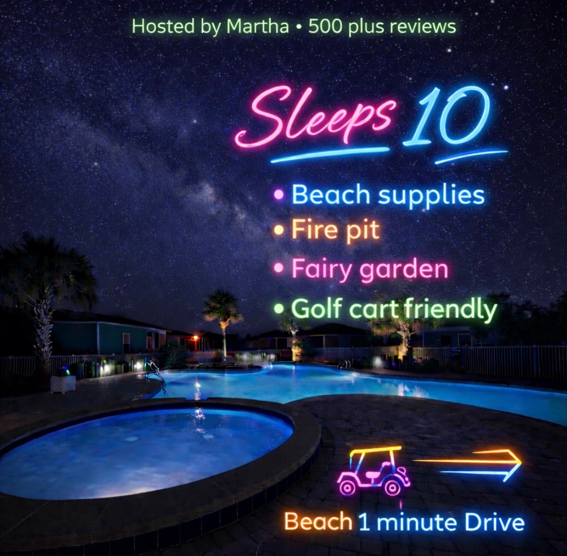 "Shipwrecked Orange Beach" ☀ 8 bikes provided ☀ Ping pong & Foosball ☀ 4 Arcades w/ Star Wars Pinball & Wheel of Fortune, NBA Jam and Pacman ☀ Beach – 5 min walk (cart, chairs & toys provided) ☀ Pool – 1 min walk out front door ☀ Direct access to Gulf State Park's 25+ miles of walking/jogging/biking trails – 1 min walk ☀ EV Charger + free parking for 3 vehicles ☀ Digital board game table ☀ Private, fenced sandy backyard w/ hanging chairs + cornhole + hammocks + firepit + grill ☀ Baby gate