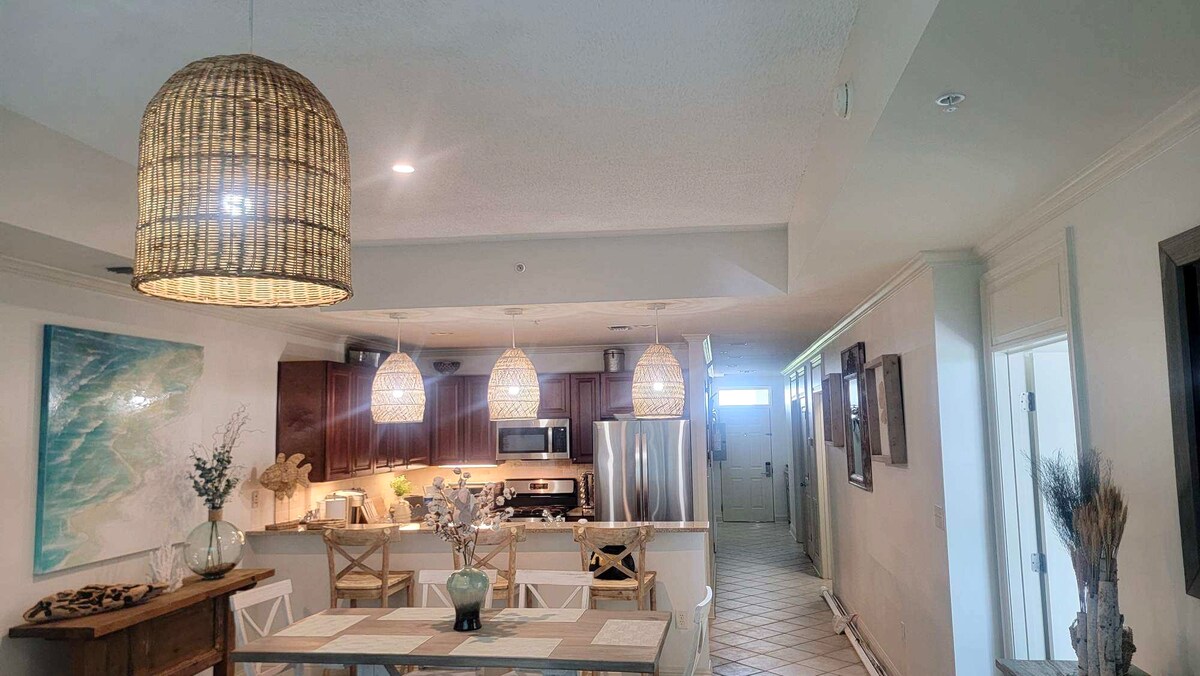 Have fun with the whole family at this beautiful & all newly updated condo at The Wharf! Sleeps up to 8 people (1 king, 2 queens & 1 queen sofa bed), garage parking, balcony with gas connected grill, beach umbrella, beach chairs, pack-n-play, kids plates, cups, utensils, washer/dryer, ice maker, wine fridge, coffee pot AND kuerig! Updated beautiful serene unit with kitchen seating for 8! Shampoos, soaps, paper products & garbage bags! The best board & card games! Smart TVs in every room!