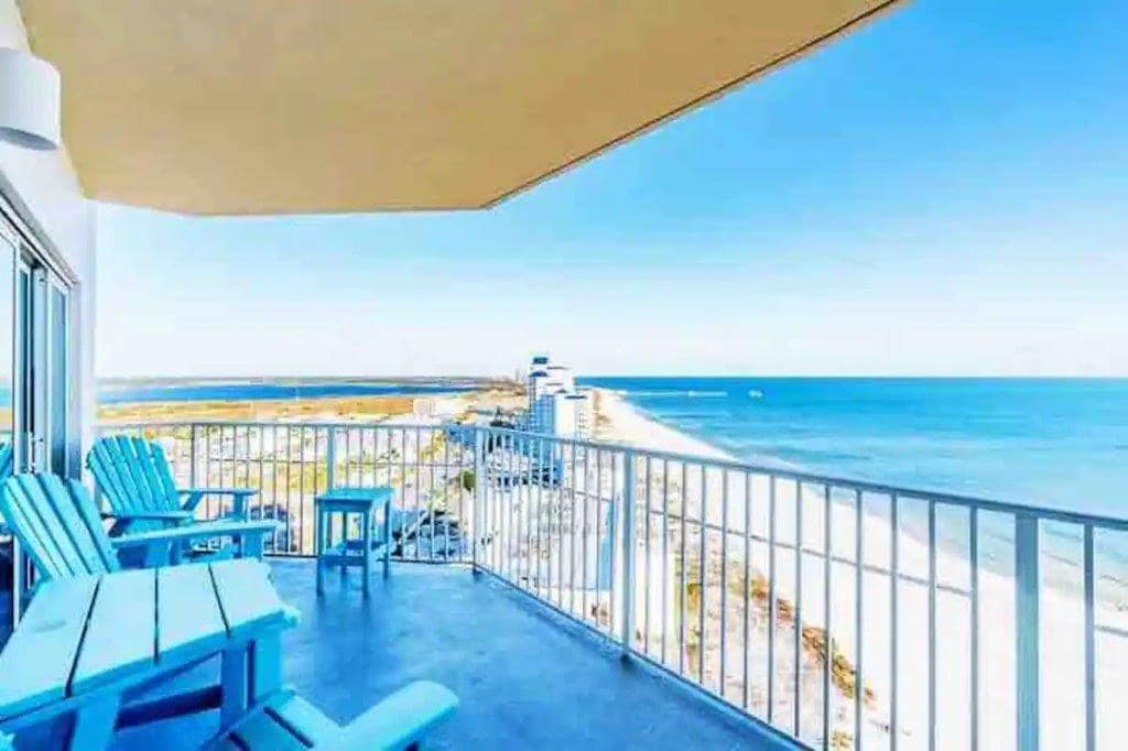 Experience the allure of Gulf Shores & breathtaking beach views from the 9th floor private balcony. Full amenities ensures an unforgettable stay. Ideal for families, work/sport events, romantic escapes, or solo adventures. Right on the Gulf of America’s sugar-sand beach, offers convenient proximity to the State Pier, the Hangout, and beachside restaurants. Reserve Now! *** Military discount available for active/retired military and veterans Royal Palms 902 is privately owned and managed