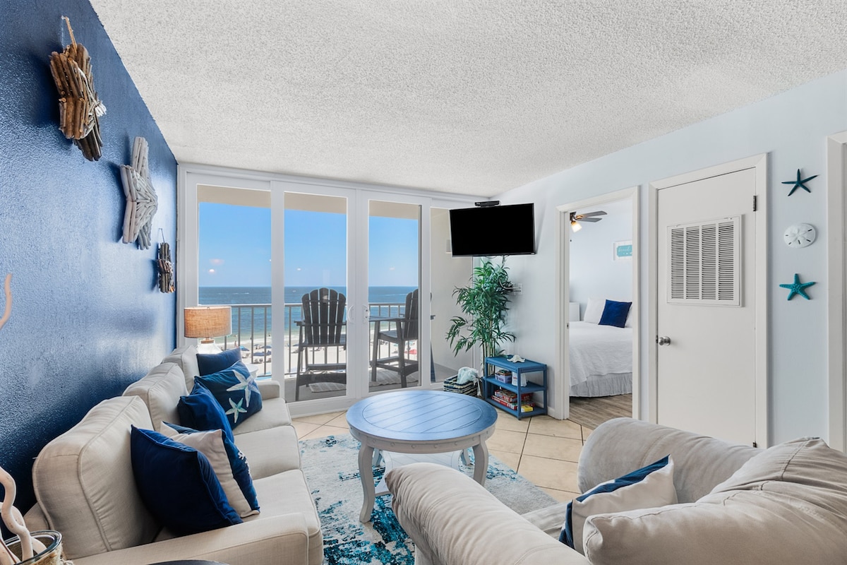 Where breathtaking views meet prime location. Enjoy: -Stunning private balcony with sweeping gulf views. -Step out of your unit and on to the beach. -Complimentary parking included in reservation ($30 Value!). -1 King Bedroom + built-in bunks + queen sofa bed. -Private pool right on the beach. -Located in the heart of Gulf Shores, walking distance to The Hangout and much more. -Newly renovated unit! -"Guest Favorite" designation ranks us in the Top 5% of all AirBnB listings!