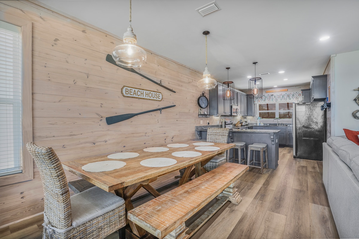 Escape to Gulf Shores where you can relax and unwind in our new, 3-bedroom, 4-bath beach house that comfortably fits groups up to 12! Indulge in luxury with private bathrooms for each bedroom and custom-built bunk beds that your kids will adore. Step outside and enjoy the deeded beach access just 30 steps away or splash around in the expansive pool. We’re located one mile from the famous Hangout and within minutes of the best restaurants, shops, and attractions that Gulf Shores has to offer!