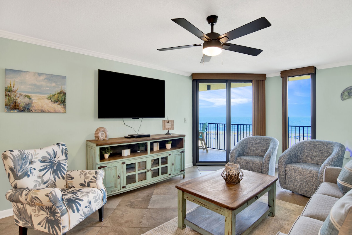 Bring the whole family together in this beautifully designed & thoughfull laid out beachfront condo. Offering spectacular views, multiple generous living areas & comfort for every generation. With room to gather & space to unwind, this home is perfect for grandparents, parents & kids or friend groups to share unforgettable beach days to enjoy together without feeling crowded. With panoramic views from floor-to-ceiling windows, this spacious condo offers breathtaking scenery sunrise to sunset.