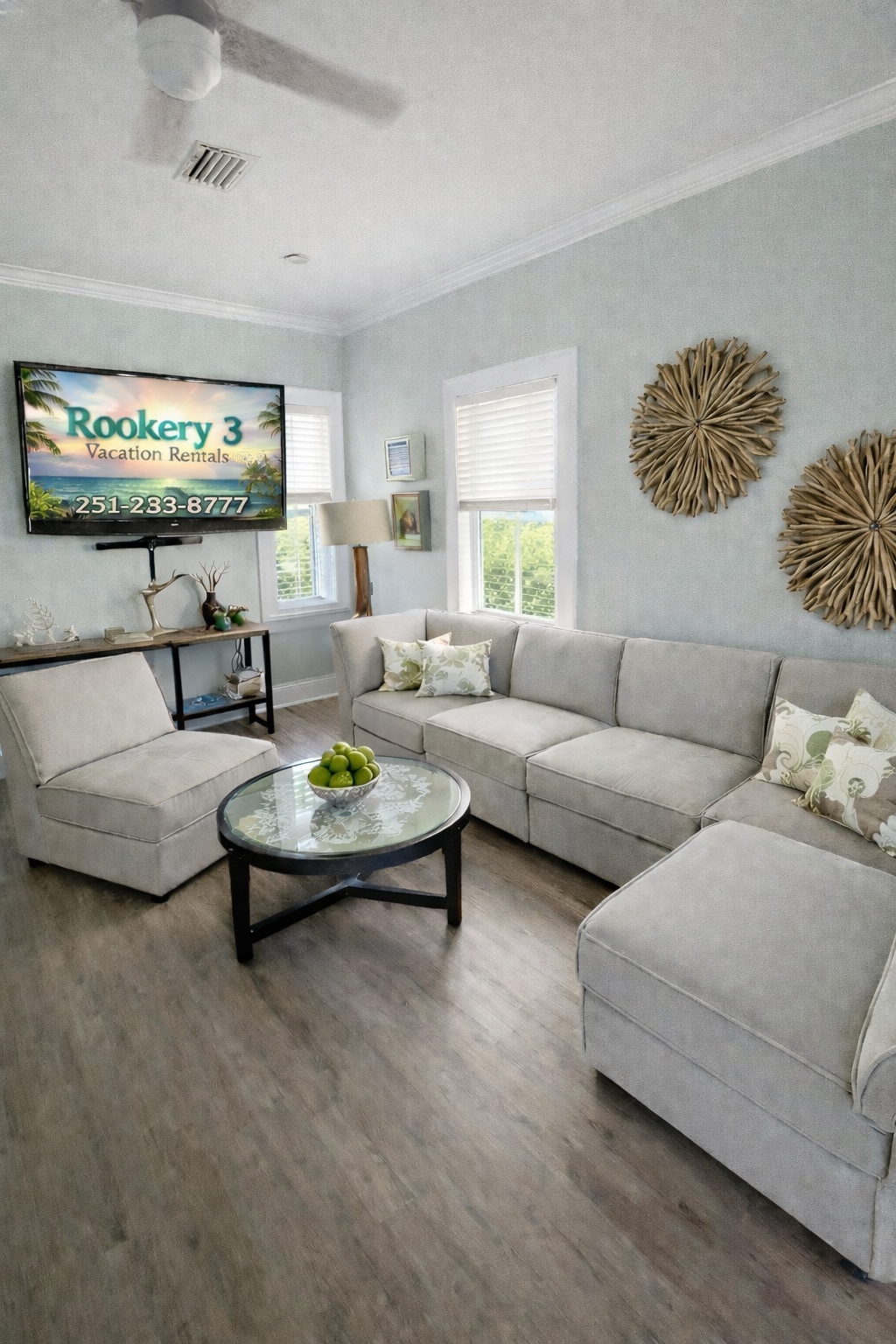Kick back and relax in our beautiful coastal cottage just a stone's throw from Perdido Bay and two miles from the white sands of Perdido Key and Johnson's beaches. Enjoy open-plan living, comfy beds, and TVs in every bedroom. The backyard features a covered patio with BBQ, hot tub, garden fire pit, and a cool hammock arbor. Truly a trip for the books!