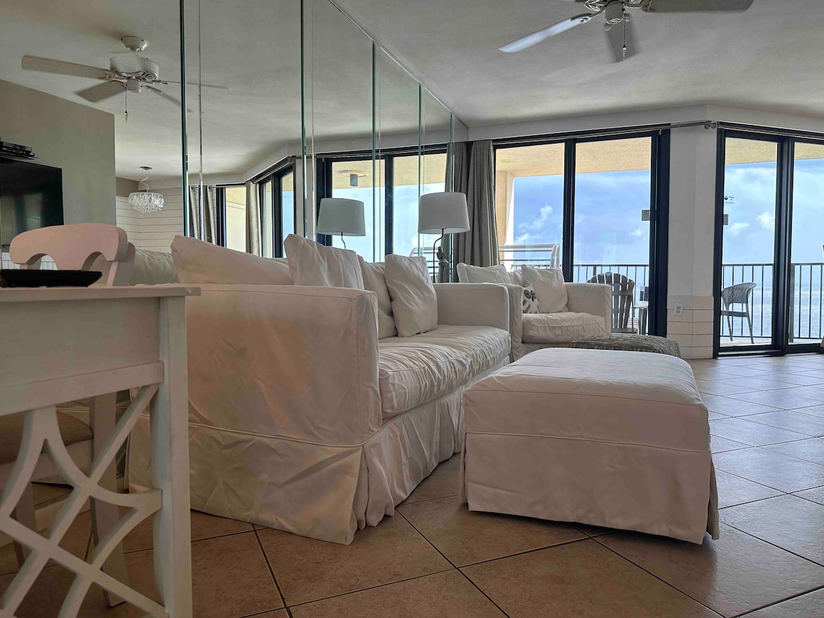 Enjoy your vacation in style at this centrally-located, beach front condo. This Gulf front corner unit has a gigantic balcony w/ plenty of space for dining, sunbathing, people watching & taking in the spectacular white sand beaches & sparkling sea! With all new furniture & decor, you'll be greeted to the famous Gulf beaches in style & comfort. Each bedroom enjoys balcony access. Bluewater is close to many of the fabulous restaurants Orange Beach is known for & only 5 mins from Gulf State Park!