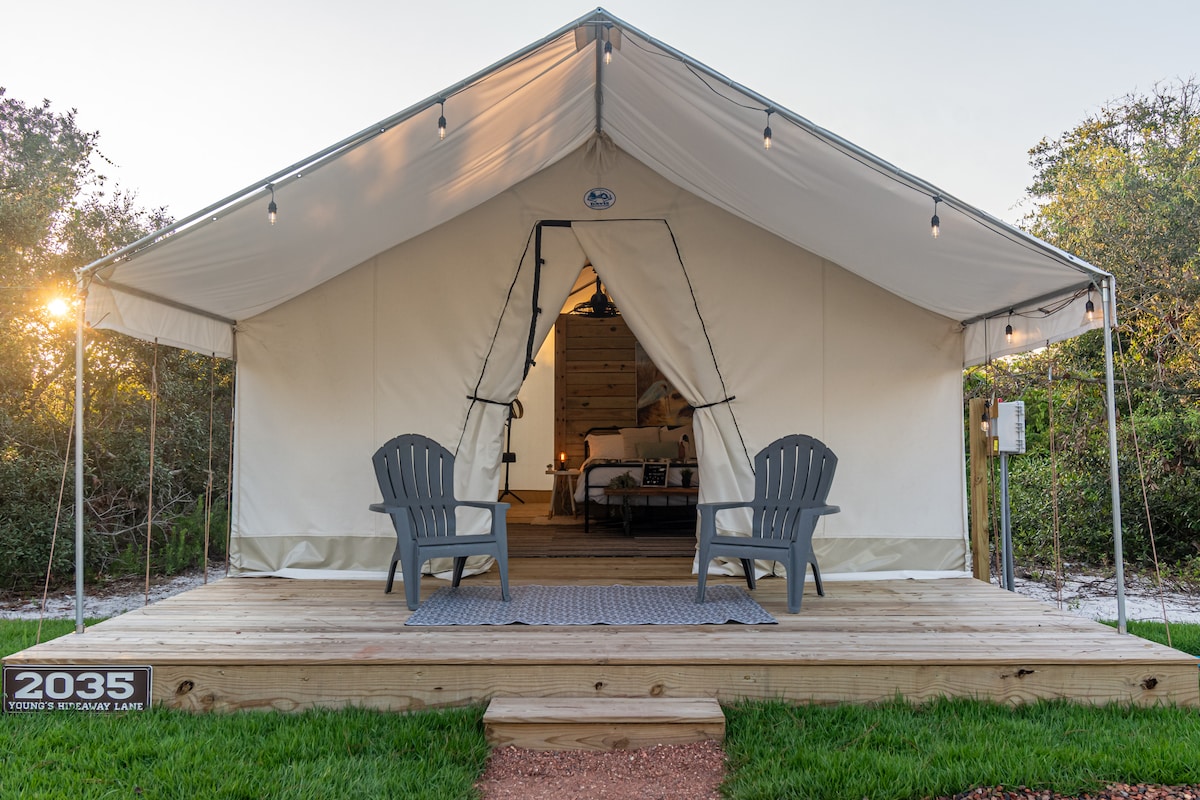 Timberline Glamping Orange Beach is located where Orange Beach meets Gulf State Park, just steps from the Gulf. This location merges the tranquility of nature with the luxury of modern comforts, creating the perfect retreat for every kind of traveler. Whether you're planning a family vacation, a romantic getaway, or an outdoor exploration, Timberline Glamping Orange Beach offers an experience that combines the best of the Gulf's natural beauty with the upscale amenities of glamping.