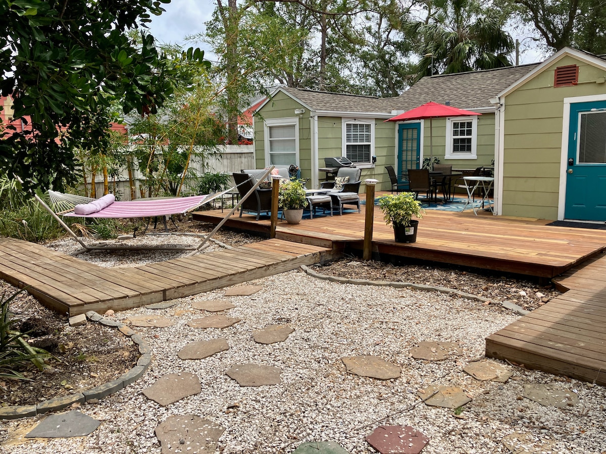 Welcome to Uncle Finley's! Situated in the heart of Gulfport's Art and Waterfront District, This cottage listing is for unit A of the duplex. Step outside and walk to Gulfport Beach only one short block away, experience the highly-rated restaurants and shops, or browse local arts and crafts during the weekly Tuesday Morning Market during your stay. Want to experience more of Tampa Bay? Downtown St. Pete, St. Pete Beach, and I-275 access are only ten minutes away.
