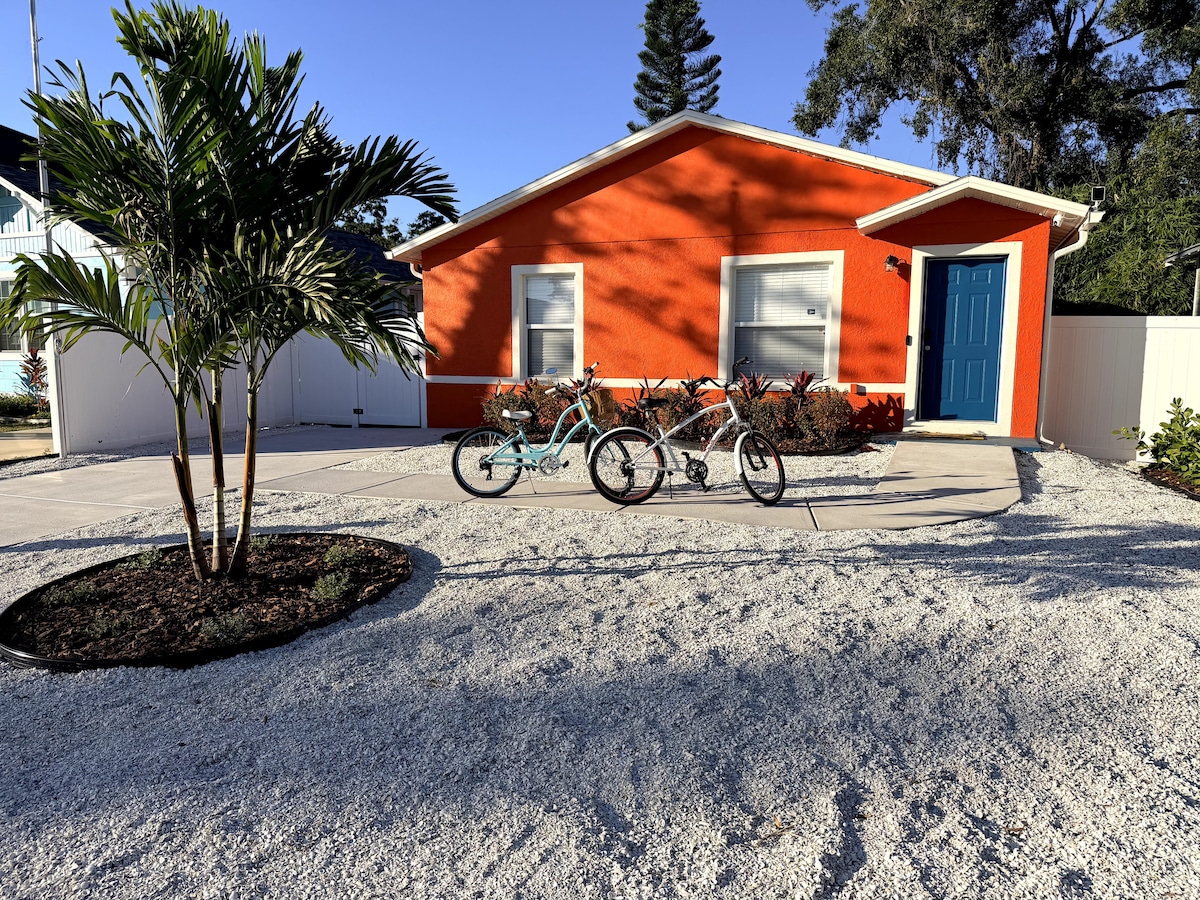 Relax, reconnect and revitalize in this private, intimate cottage that has everything you need to leave the hustle and bustle behind. Surrounded by lush tropical vegetation in the shade of giant live oaks and located in the Gulfport Arts District, you're a short walk or bike ride from excellent urban parks, restaurants, live music, fashion and art boutiques, dancing at the Gulfport Casino, community theater, and a beautiful beach that looks out over sailboats moored in Boca Ciega Bay.
