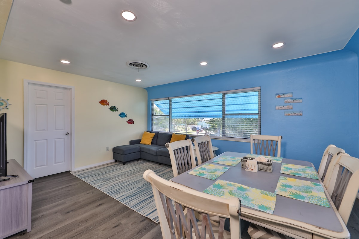 *Construction discount! The yards and upstairs apartment are undergoing renovations. Please note the seating on the decks is limited and there may be noise in this unit during the day from the work above.* Walk into this welcoming apartment and find your paradise! This cozy space has shared access to a large courtyard w/ grill & smoker. Short 10-minute drive to the best world-famous Gulf beaches. Free bikes! Come make yourself at home in this Hidden Oasis 🌴