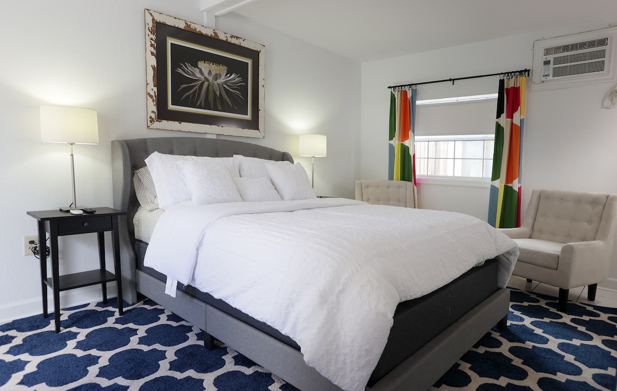 距离海滩几分钟车程,配备加大双人床,私人房源,已更新