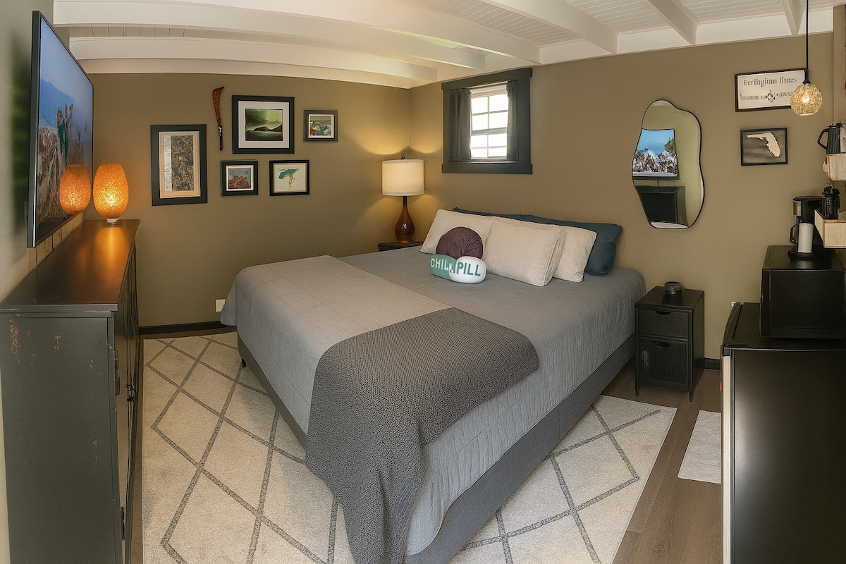 Our Cozy Casita is located adjacent to the main house in a quiet residential neighborhood with a separate entry and fenced in parking space for our Guests. Enjoy our tropical garden and beautiful pool area. The pool is not heated. Small kitchen with Whirlpool electric stove, microwave and mini-fridge. 40” Samsung Smart HDTV and WIFI. Located within minutes of great restaurants, craft breweries, and local museums. Lots of great outdoor activities along St. Pete’s beautiful waterfront.