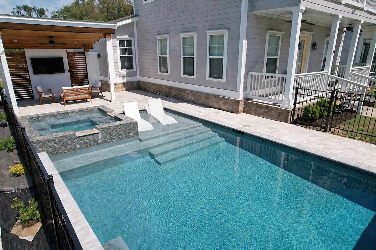 海滩别墅/距离海滩2分钟!/泳池/热水浴缸/游乐场