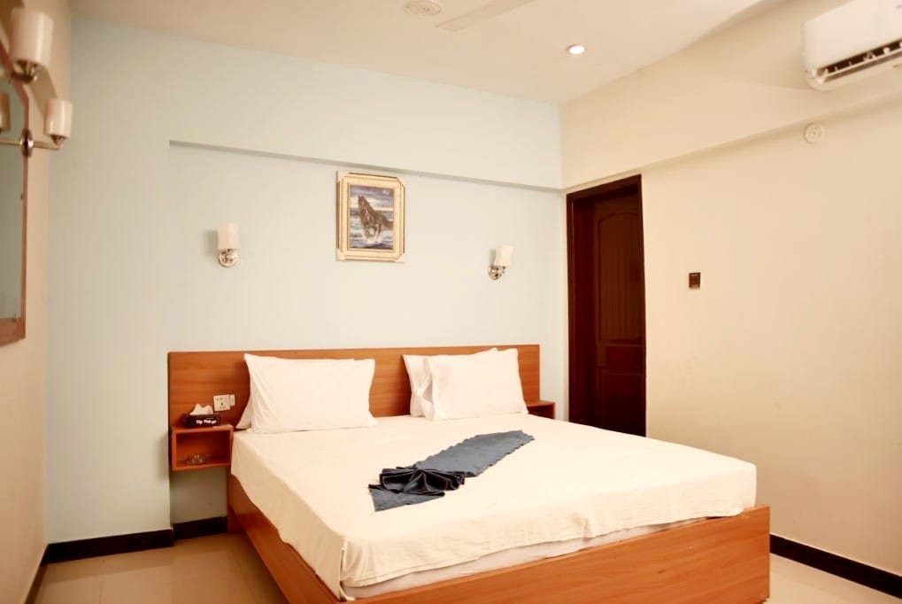 Stay at an exclusive private club in DHA Phase 6, Karachi. Enjoy a private lounge, housekeeping and room service. Access pool, gym, a walking track, and sports facilities for a minimal fee. Gated entry, 24/7 security, and a prime location ensure a seamless stay. Single person room available with a king sized bed.