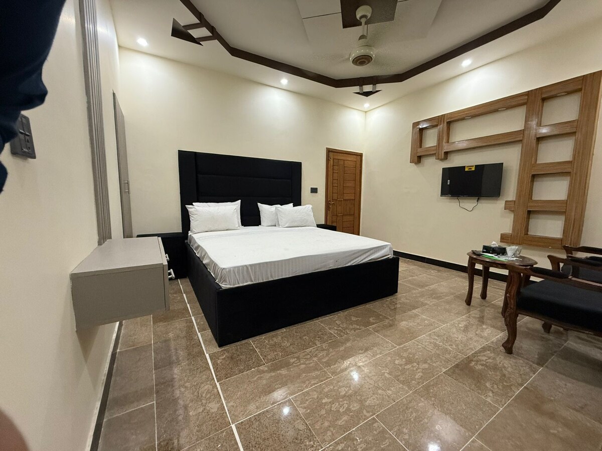 Spacious 6-Bedroom Guest House in Karachi Enjoy comfort and convenience in our fully equipped guest house, featuring modern amenities, cozy bedrooms, a full kitchen, and 24/7 security. Perfect for families, groups, or business travelers. Book your ideal stay today! Fully furnished bedrooms with comfortable bedding. A modern kitchen equipped with all essentials. Spacious living and dining areas for relaxation or work. High-speed Wi-Fi and smart TVs. 24/7 security and backup power.