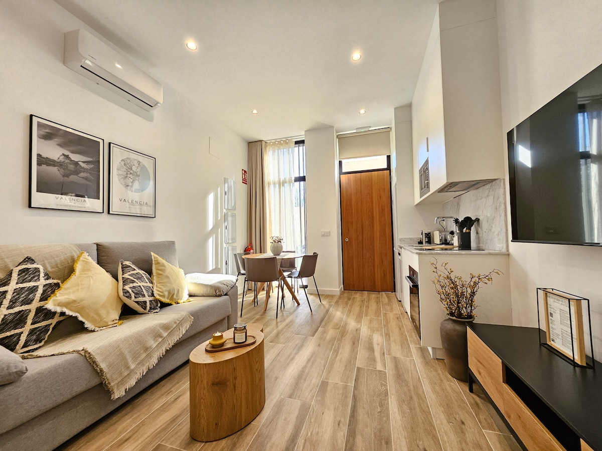 Sentirse como en casa, en un encantador y cálido apartamento completamente nuevo el cual se ha diseñado pensando cada detalle, para brindar una estadía confortable y sin preocupaciones. Su espacialidad, su completo equipamiento y sus gestos de calidad, busca ofrecerte una estancia llena de buenos momentos. Situado en El Barrio del Botanico, en un primer piso (sin ascensor) a unos metros de la entrada del Casco Antiguo Valencia y cerca de los sitios más relevantes y turísticos de la ciudad.