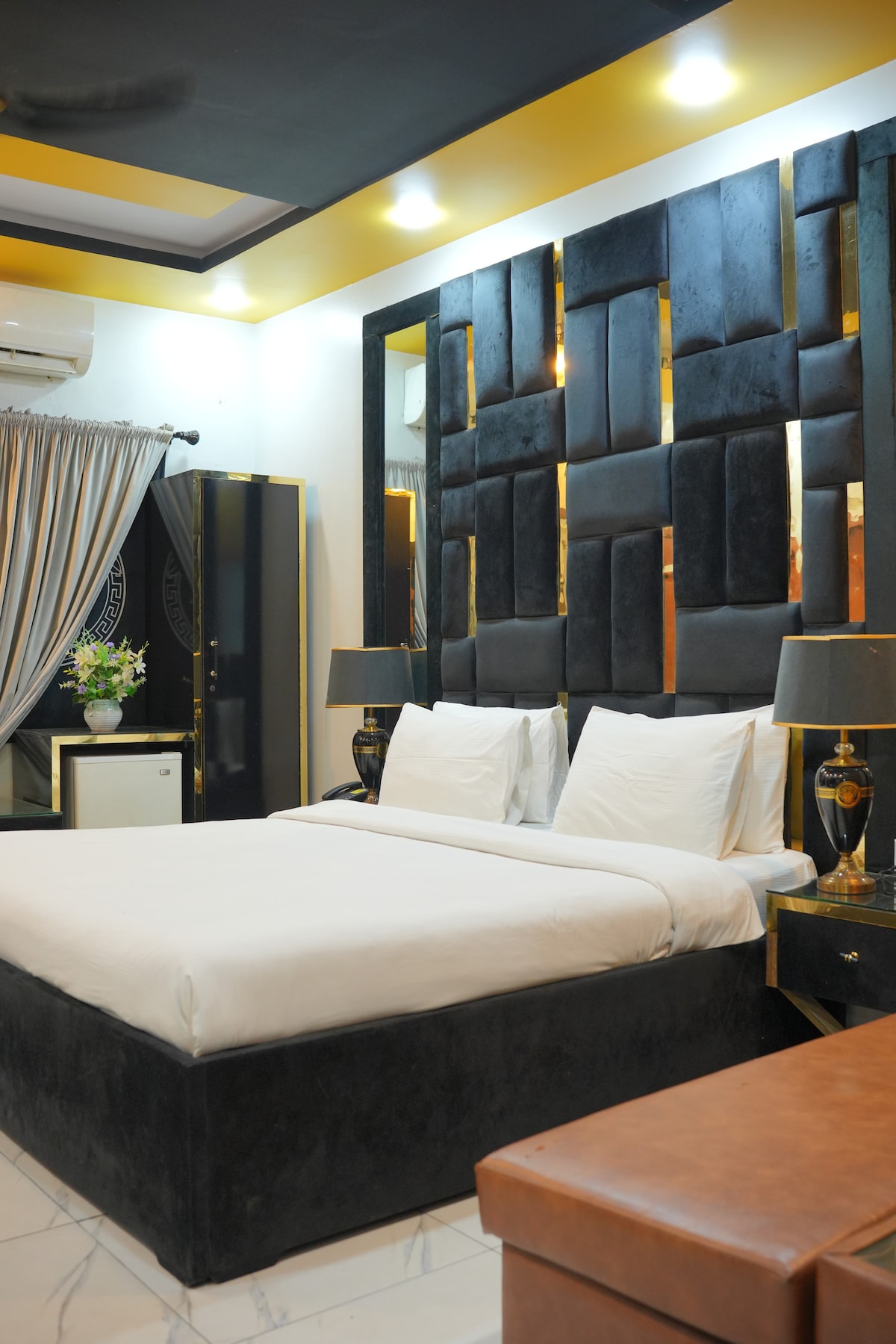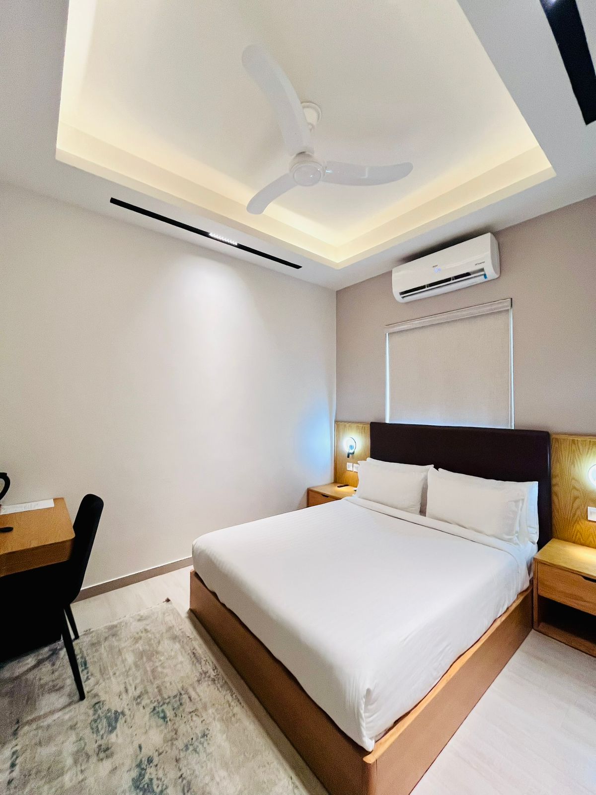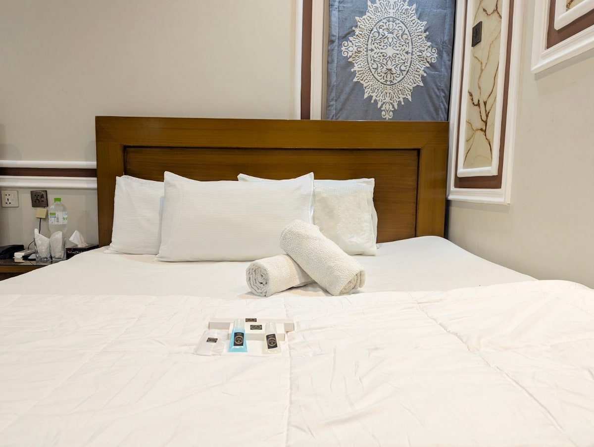 This comfortable double-bed room is ideal for 2-3 guests, offering all the essentials for a relaxing stay. Room Features: Double bed with space for 2-3 guests Convertible table and workspace Hotel Amenities: 24/7 access to the gym Room service Secure Parking Nearby food spots, marts, and hospitals Breakfast & extra mattresses (additional charge) House Rules: No smoking No unmarried couples No alcohol Enjoy your stay in the heart of the city with everything you need just steps away!