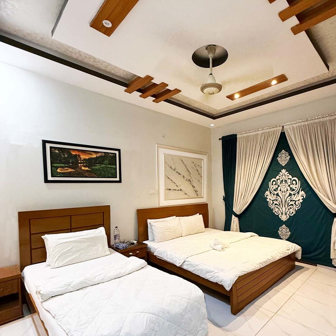 Feel free to message us at ....0318 and five 2 and 9 7 and 149... Located near milinium mall , our property offers comfort, convenience, and accessibility. Restaurants, shops, and a park are within walking distance, while Lucky One Mall is just a 2-minute drive. Enjoy clean, spacious rooms, breakfast , and laundry facilities. A nearby mosque provides a peaceful spot for prayers. Perfect for families and couples, our safe, family-friendly environment ensures a relaxing stay.