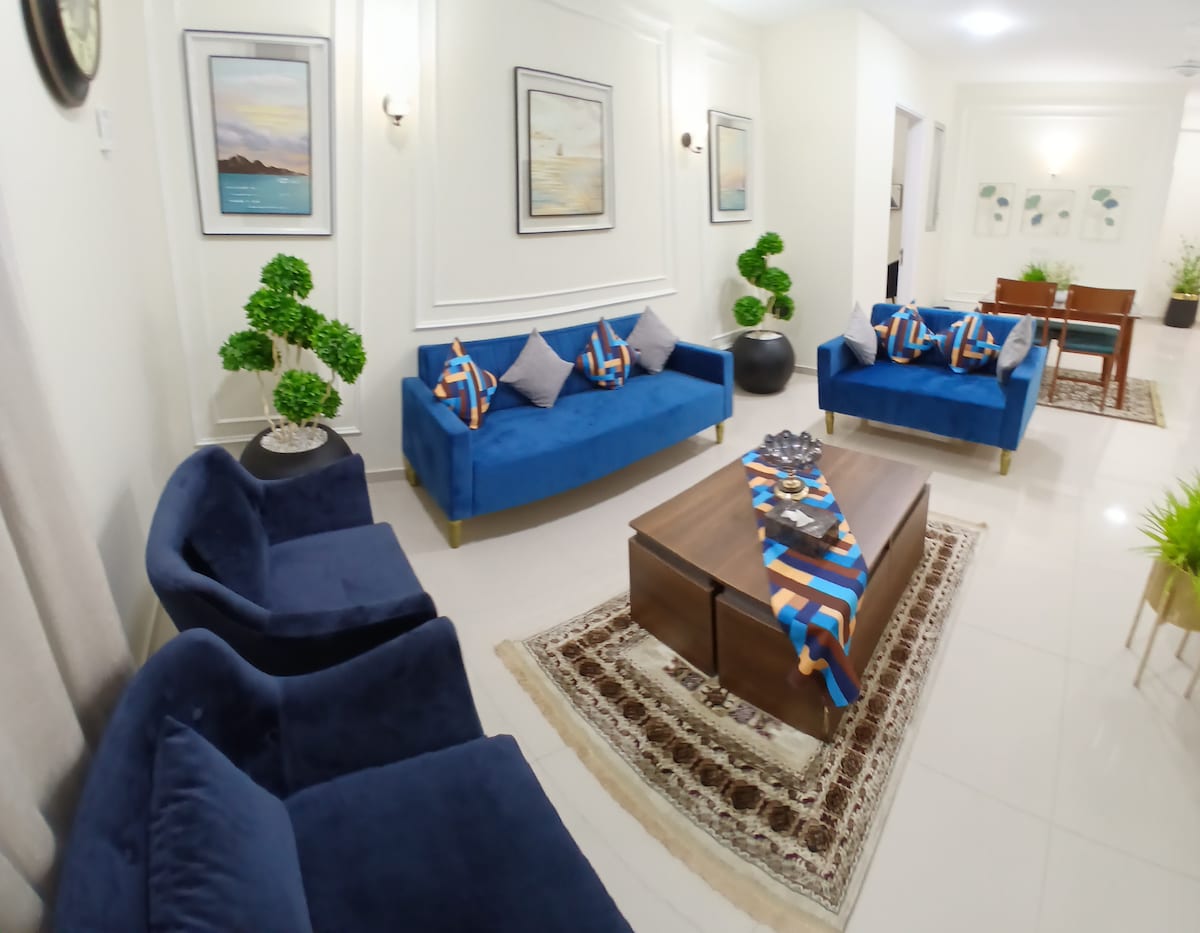 2BR apartment nestled in the heart of Karachi's vibrant city center. Each bedroom is a haven of comfort with plush bedding .The open-plan living area is a perfect blend of modernity and warmth,, fully-equipped kitchen. With local shops and eateries just a stone's throw away, this apartment is not just a living space but a gateway to the rich culture and energy of Karachi. It's the perfect urban retreat for anyone looking to soak in the city's dynamic spirit! How does that sound? 🏙✨