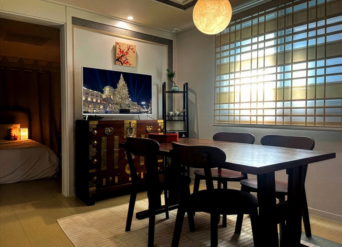 Chloe HAUS offers an "oasis of relaxation amidst the busy city!" Renovated in 2023, it combines the charm of a countryside home with warm persimmon wood tones, suited for a modern lifestyle. Spacious rooms with cozy, elegant design create a homelike feel, and a large desk is ideal for business needs. A projector is also available for enjoying Netflix. We're ready to warmly welcome you for a comfortable stay.