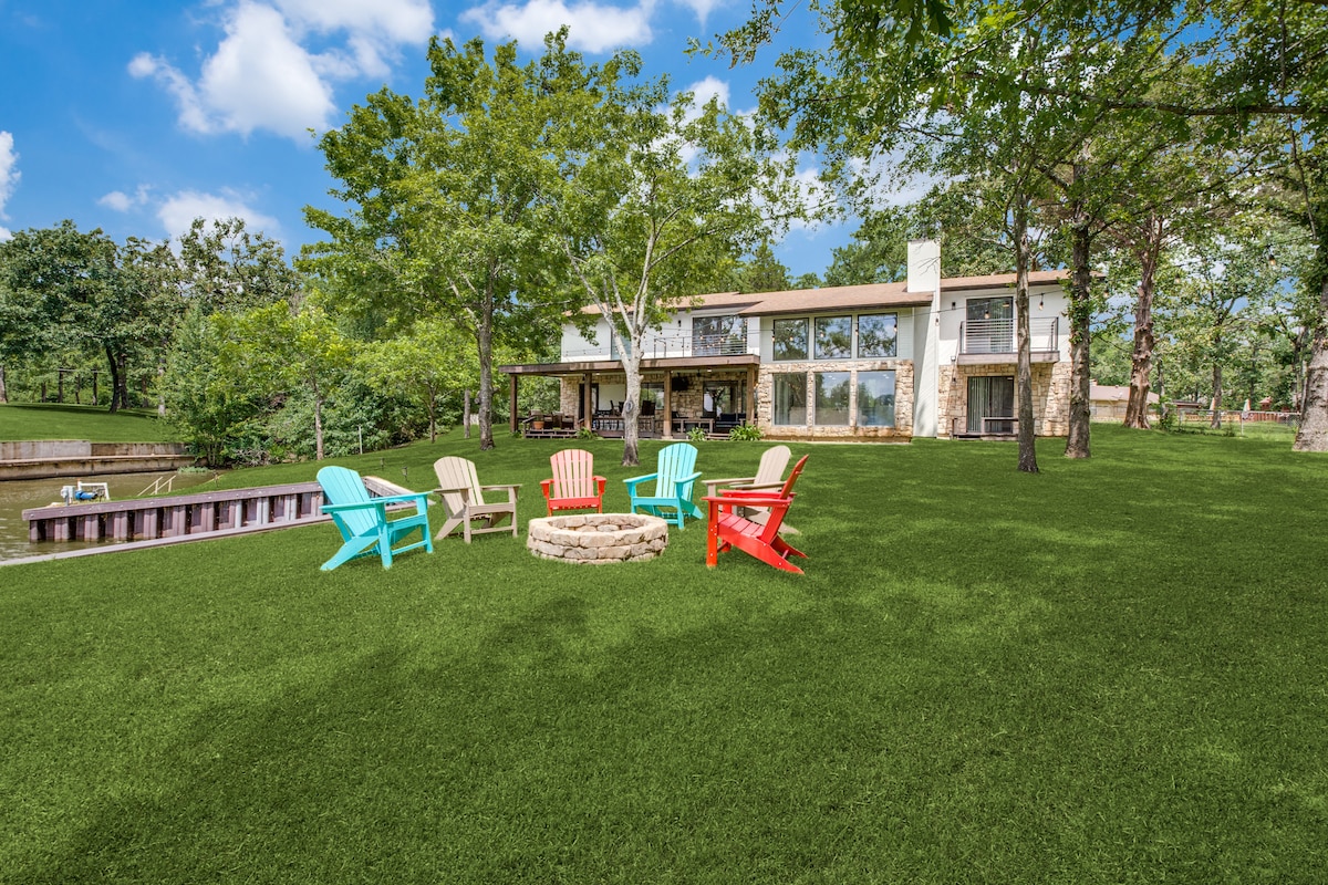 Looking for a cozy waterfront home on Cedar Creek Lake for the family? This 4/2 Waterfront with Deck Dock is the perfect layout for multiple families. We’re just 1 hour from downtown Dallas. Buffalo Inn is surrounded by mature trees, on an open protected cove right off the main body of the lake. (Best tubing, skiing water run on the lake) You’ll have access to games,2kayaks with 130Lb weight limits, hammock, floats, water toys, fishing gear, gas grill, wood fire pit, corn hole more!