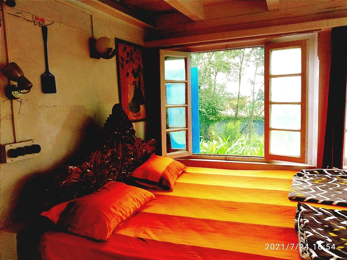 Perfect long term gateway or WFH station for family & group of friends A serene stay overlooking the rice farms with stunning mountain views, conveniently located away from the tourist hustle & yet close to the flying city Bir(2Km). The bathroom(not attached) is a mix of village style feel with modern amenities, has a shower, geyser & western style seat in a separate cubicle. Kitchen is fully functional with fresh supply of vegetables from garden along with basic ingredients supply.