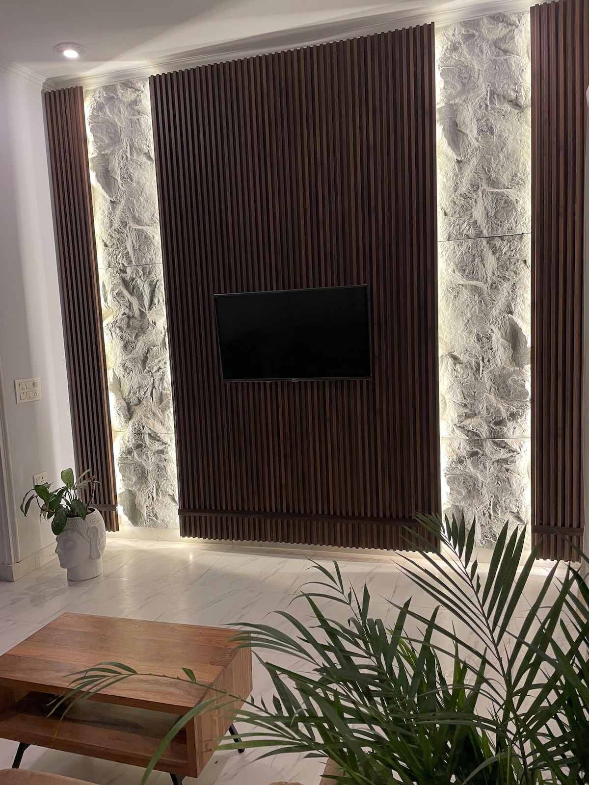 Welcome to Pine Grove, a modern and spacious retreat designed to prioritise your comfort and making your stay unforgettable. From a cute lawn to a large living area with rich interiors, a dining area, a workstation, high speed Wifi, a functional kitchen, and the coziest bedroom, we have it all to make your stay fulfilling whether you're a group of friends, a couple or a family looking to stay.