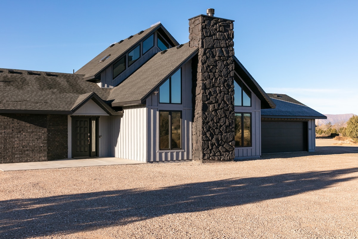 The smartest way to see Zion? From just far enough away that no one else is interuptting your morning porch views 😉 Welcome to your open-sky a-frame, located 45 minutes from the Main Entrance of Zion NP & within 2 hours of Bryce Canyon, the Grand Canyon, and Page, AZ. All the Southern Utah views, none of the crowd noise. Enjoy your private deck with dining & grilling, hot tub & fire pit. Surrounded by open BLM land with direct access to hike into the canyons from the site! Pet-friendly