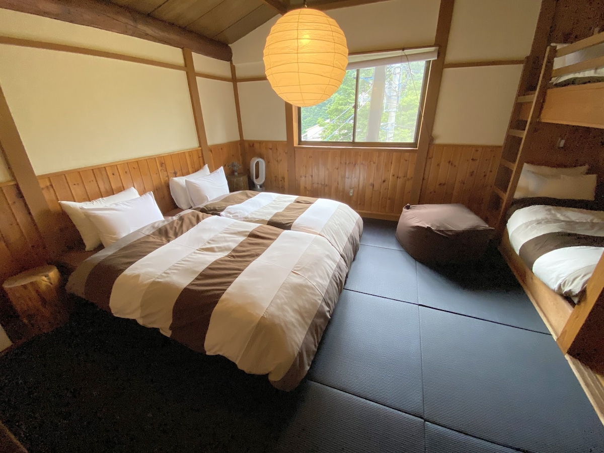 Only a 10 minute walk to the slopes, Lodge Nagano is a beautiful lodge in the snow that receives many international guests. It's rooms cater for individuals and groups with both private and share facilities. This room is a Family bunk room with private bathroom, perfect for families of 4.