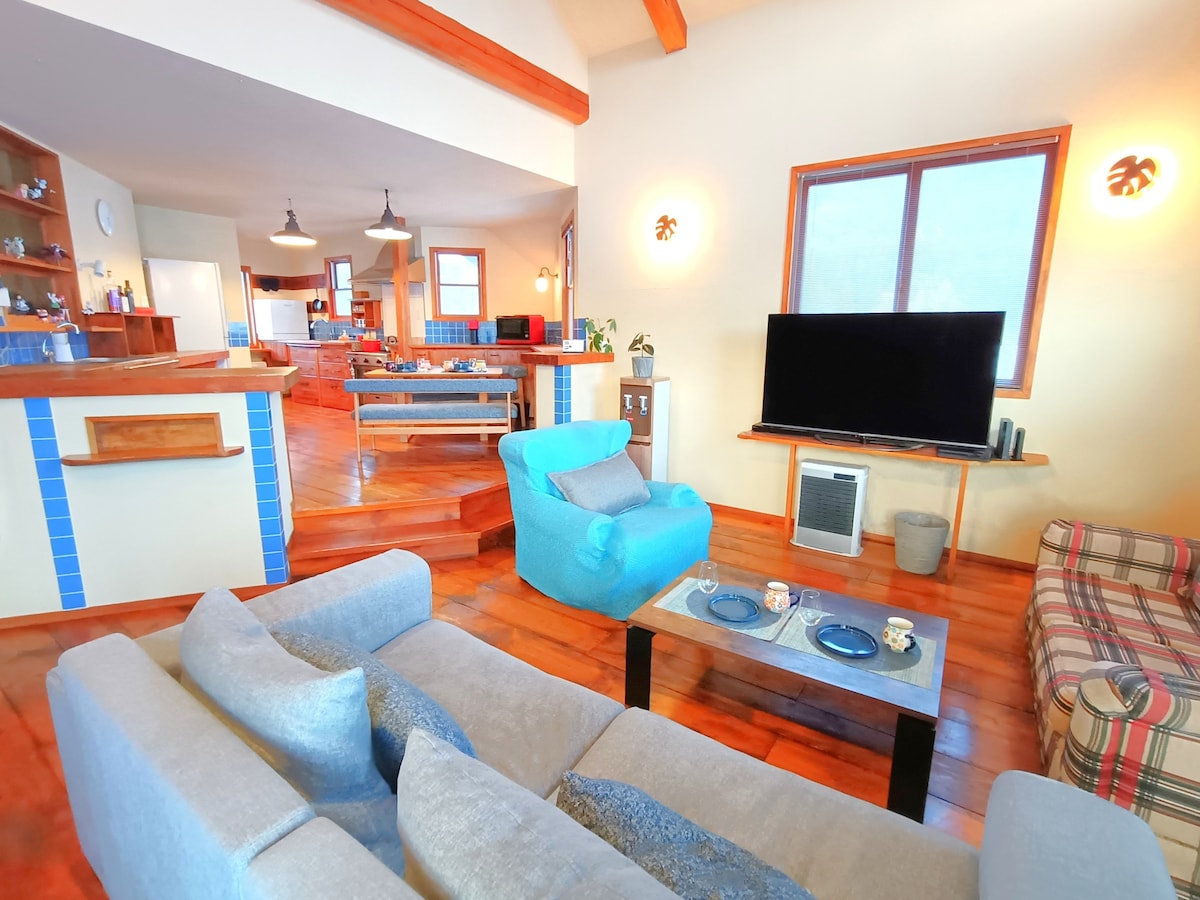 草津温泉的秘境:私密舒适,只属于您的空间。 在这个理想的隐居胜地,自然与宁静相融,为您提供宜人的休憩环境。距离日本第一的草津温泉、滑雪胜地和湯畑仅有短短5分钟车程,位置便利。 在这个拥有湯畑和富有风情的温泉小镇,您可以穿着浴衣漫步,欣赏湯もみ表演,尽情感受非日常的宁静。万座温泉地海拔1800米,享有宏伟全景,沐浴时可欣赏到令人印象深刻的景色。在冬季,这里也是众多游客光顾的滑雪胜地。北軽井沢位于浅间山东麓,拥有鬼押出和宁静的牧场等风景名胜,值得一探究竟。 此外,从旅馆可以远眺雪山美景。春季绽放的花朵,夏季翠绿的美景,秋季火红的枫叶,冬季银装素裹的雪景,四季风光无限。 这座两层楼的独栋别墅占地超过1000平方米。设有20个床垫和5张双人床,最多可容纳30位宾客。 室内提供舒适的休憩空间,也可在宽敞的户外区域尽情活动。私人停车场可容纳最多8辆车,非常适合大家庭、朋友聚会或公司团队出行。期待着您的光临,共享这片美妙天地