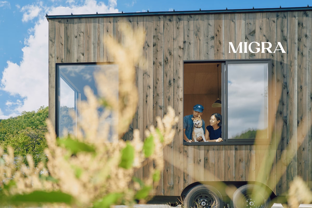 MIGRA 3名用トレーラーハウス 大きな窓と、ふかふかのクイーンベッド。 外の視線を気にせず、思い切り自然にひたれる、 プライベートヤード付きのタイニーハウス 定員:大人3名(未就学児1名) クイーンベッド×1、シングルマットレス×1 平米数:約20㎡ (+ロフト) チェックイン:15:00〜 チェックアウト:10:00 無料Wi-Fi完備 プライベートヤード(柵付き) ■ペット同伴可 ペット同伴料は、3,000円/滞在(体重35kg以下のワンちゃん2頭まで)を別途徴収させていただきます。 上記頭数・体重を超える場合は、事前にご相談ください。 【設備・備品】 トイレ、シャワー、ミニキッチン、IHコンロ1口、冷凍冷蔵庫、電気ポット、キッチン用品、エアコン、 床暖房、タオル類、バスアメニティ(シャンプー、コンディショナー、ボディソープ、歯磨きセット)、ドライヤー、空気清浄機、屋外チェア、焚火セット *ルームウェア(部屋着)、スリッパ等はありませんので、いつもご愛用のアイテムをご持参ください。