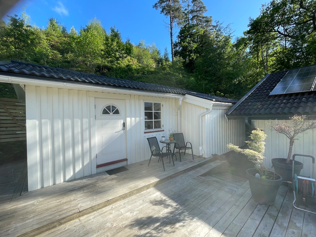 Slappna av i detta unika och lugna boende med utsikt som sträcker sig över hela askimsfjorden ända ut till Tistlarna. Här kan ni sitta och studera naturen, skärgården, höra måsarnas skri till morgonkaffet och gå ner och ta ett morgondopp det första ni gör. Barnen kan röra sig fritt i området då det inte finns någon direkt trafik, istället är det fina naturområden runt knuten. Här finns närheten till Göteborgs centrum(14min), stillheten och fina bad. Varmt välkomna till min gäststuga!