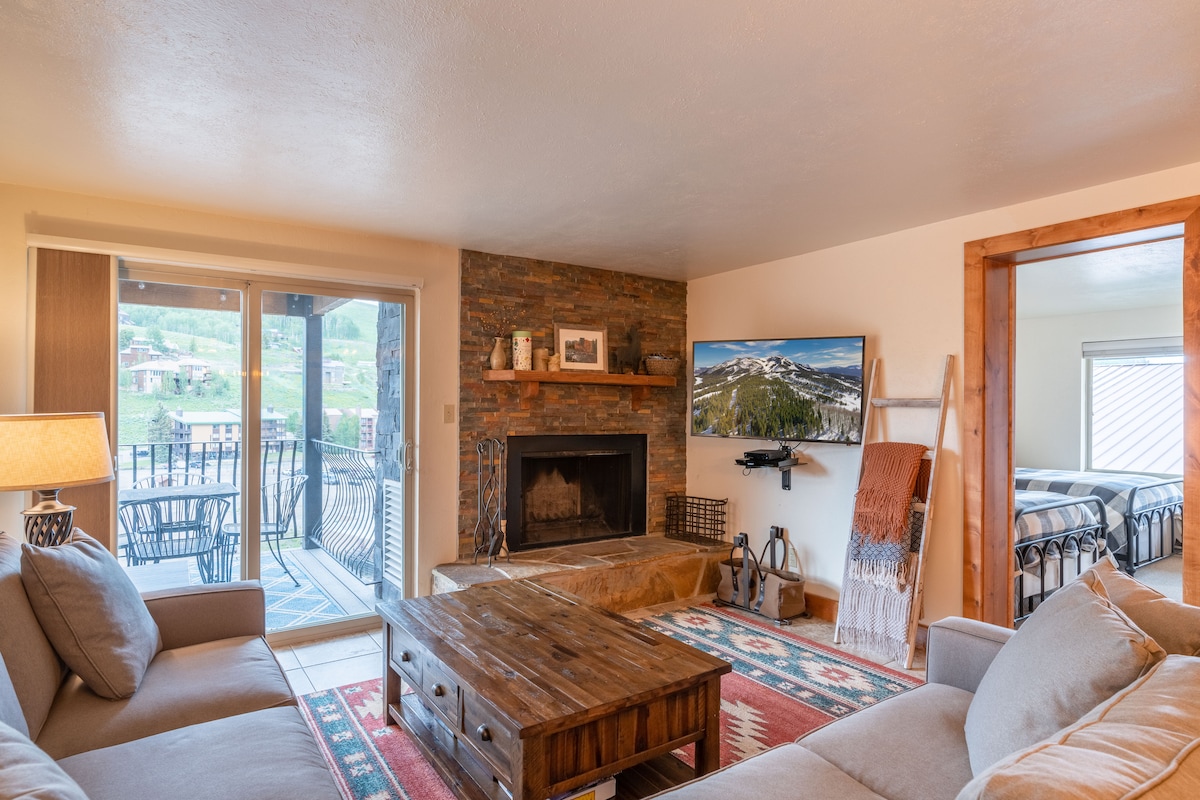 现代滑雪场内/外2卧公寓,热水浴缸,山景!