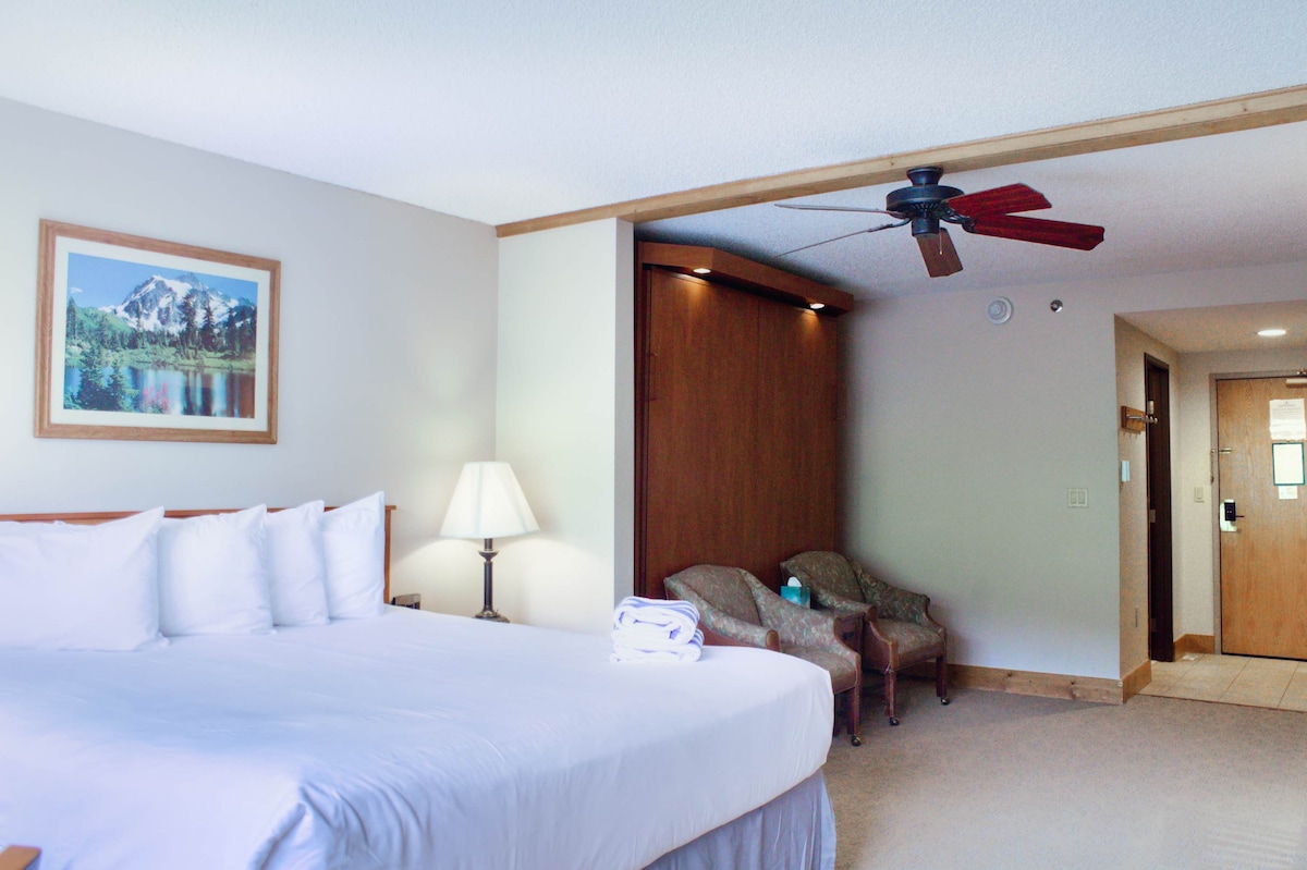 The Grand Lodge is where affordability meets comfort. This budget-friendly, no-frills hotel is perfect for those who want to enjoy all that Crested Butte has to offer for less. Located just steps from ski lifts, bars, restaurants, and the free shuttle to downtown; the location can't be beat. This spacious studio includes a king bed, a king-sized murphy bed, and a kitchenette. Building amenities include a hot tub, heated pool, spa, gym, sauna, and EV charging. Business License ID: 304504