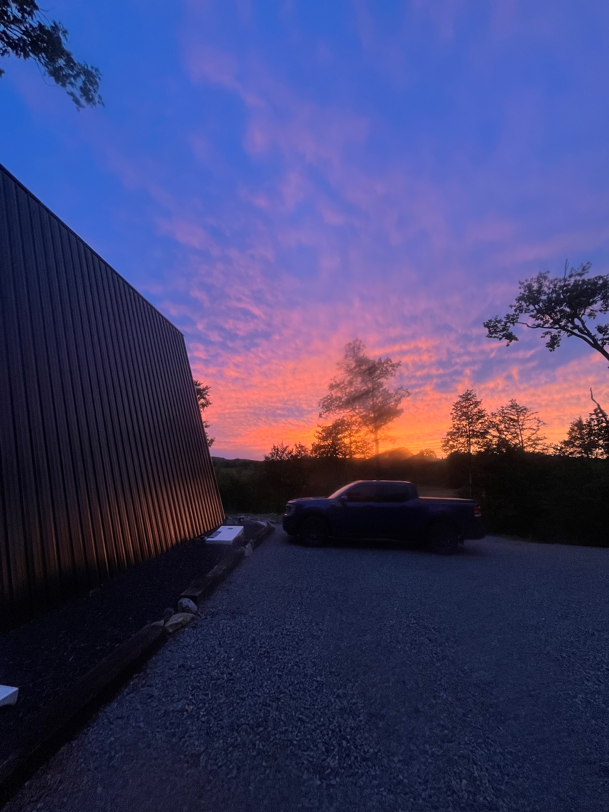 风景如画的 A 形房屋,拥有小木屋氛围和日落美景